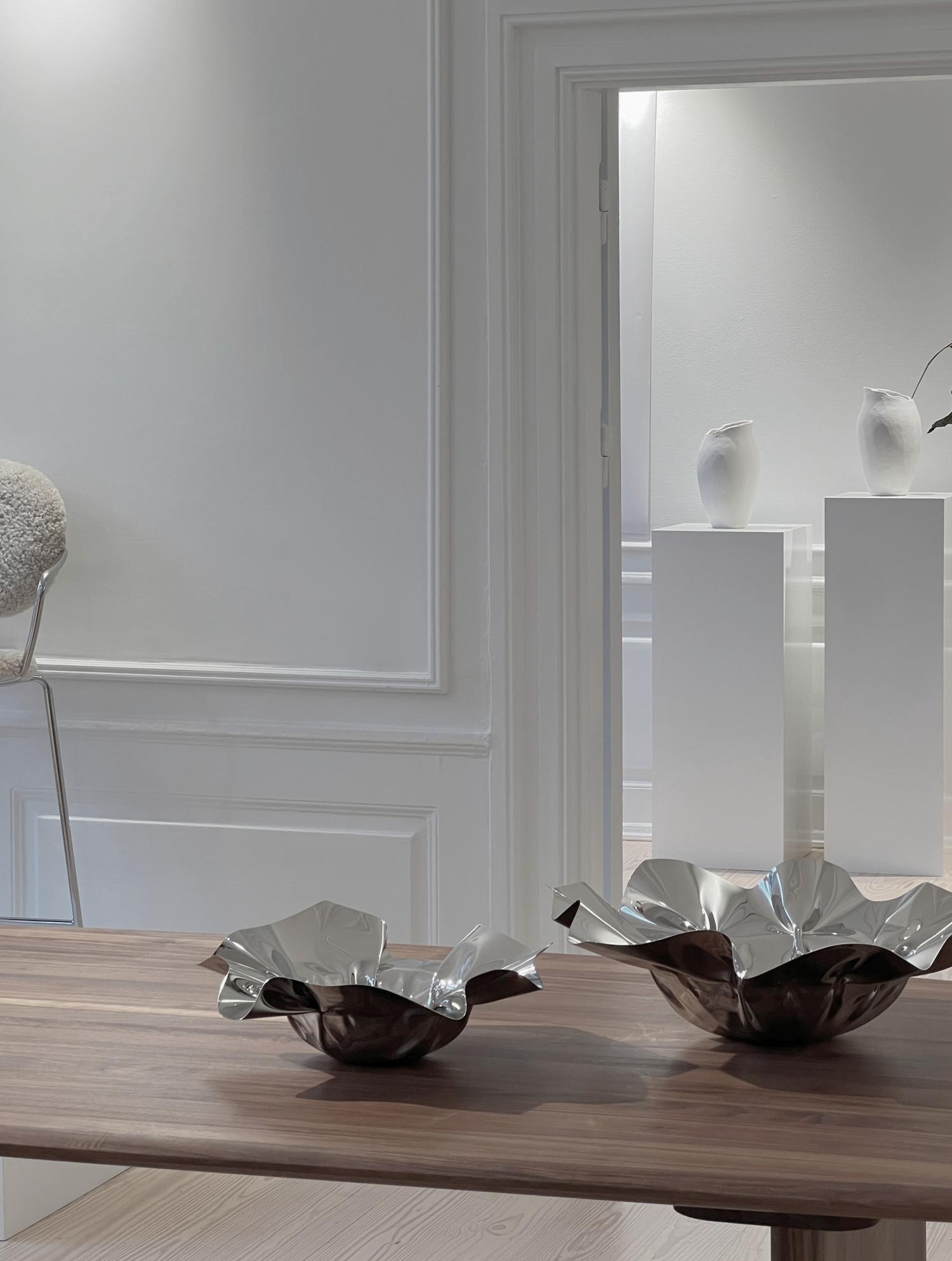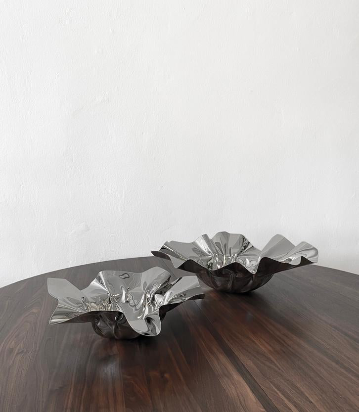 The Contour Bowl is a beautiful example of minimalist design and precision engineering. Made from a single sheet of high-quality stainless steel, it features a seamless construction with no visible joints, emphasizing its smooth, organic shape. Each curve and contour is carefully crafted, giving the bowl a fluid, natural look that draws the eye. Whether used as a centerpiece or for serving, the Contour Bowl stands out for its elegant simplicity and refined finish, making it both a functional item and a piece of art.