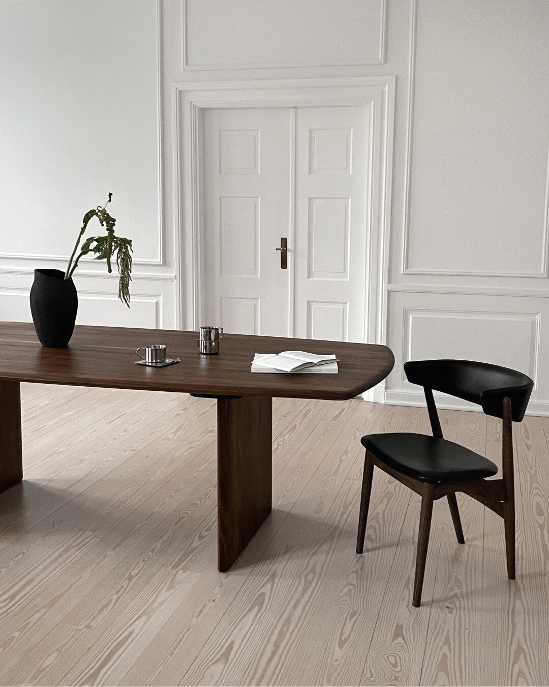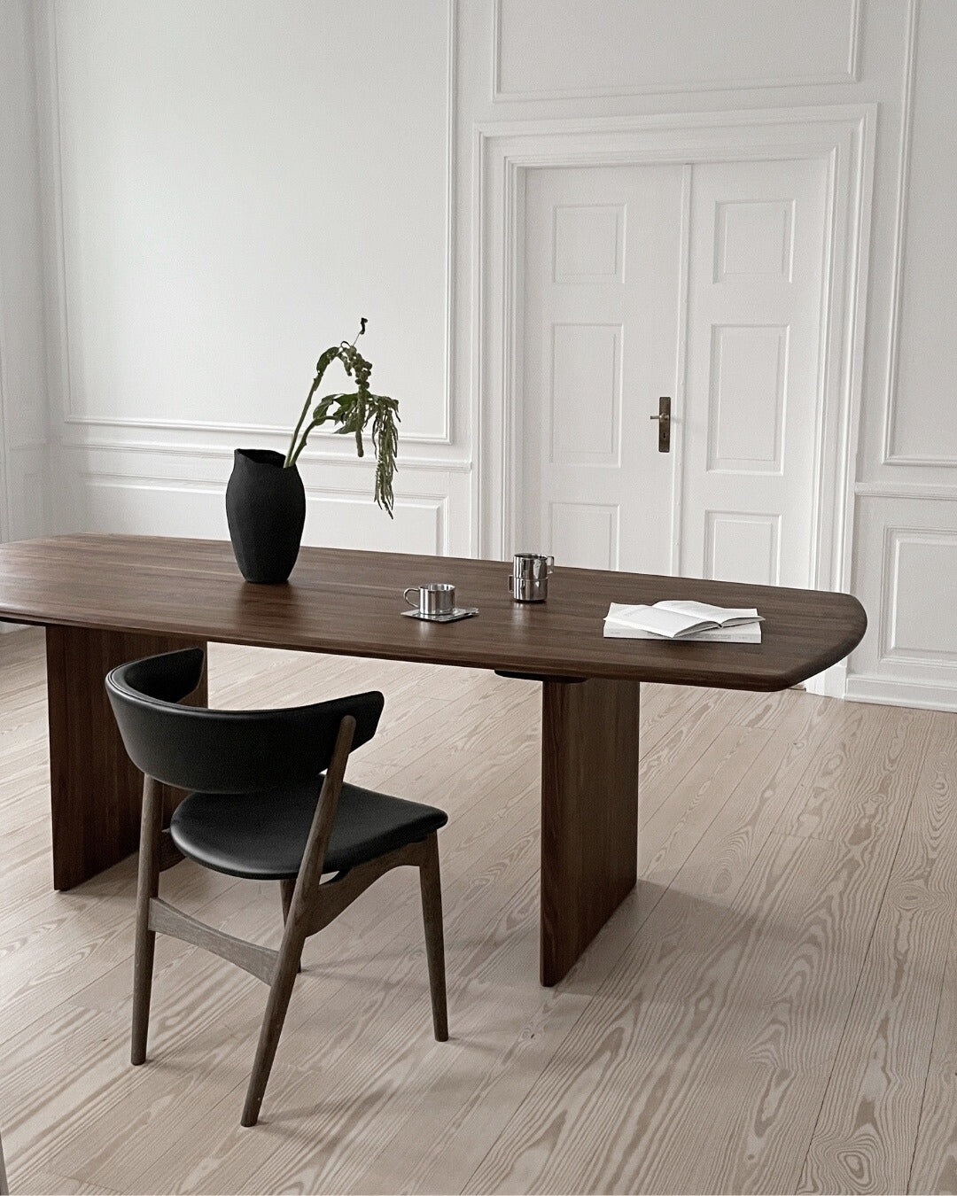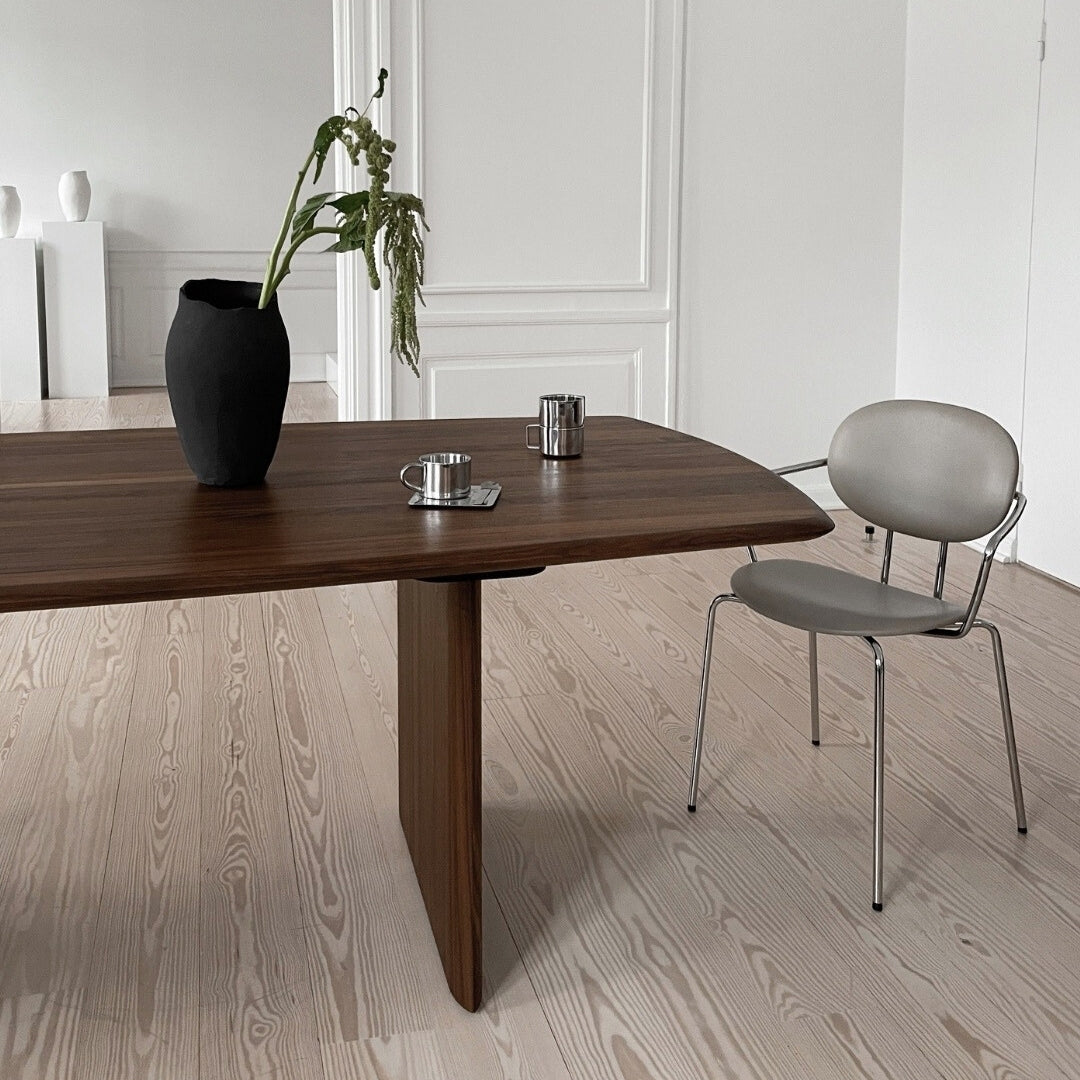 The Sibast No 7 Dining Table is conceived as a seamless continuation of the Sibast No 7 family, featuring a design that beautifully complements the existing range of Sibast chairs. Crafted from the finest solid wood, available in walnut or oak, the table boasts an almost floating tabletop supported by two massive legs. It is also made from solid walnut or oak. This construction ensures stability and enhances the table's light and elegant expression.