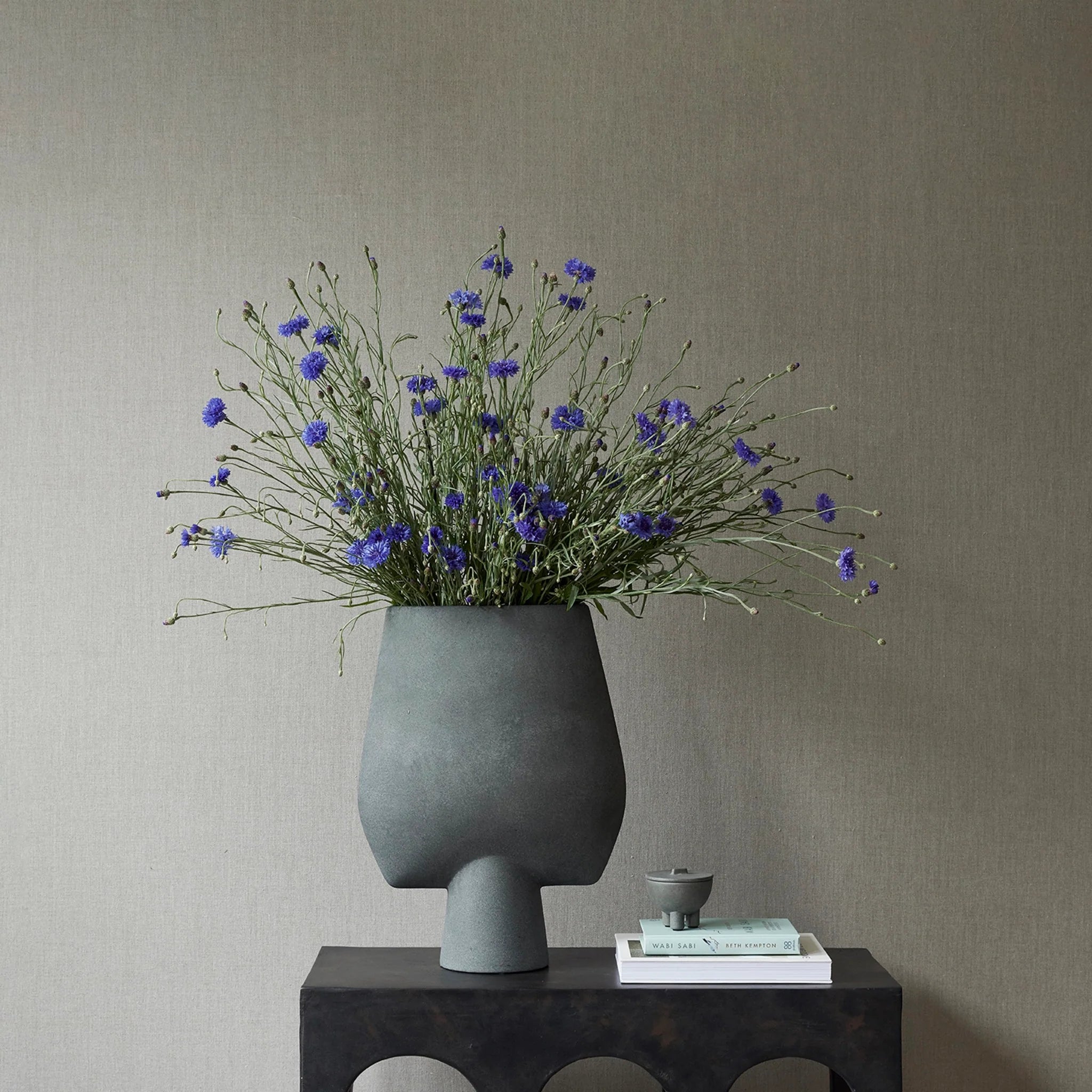 The Sphere collection has become synonymous with the visual language and the signature series of 101 Copenhagen. The series is a family of unique silhouettes and textures gathering in a decorative and sculptural manner. Elegantly sculpted, each vase is finished with an intricate ornate detailing. Inspired by ancient Chinese vases, a palette of faded earth tones is characteristic of the Sphere collection which was developed in close collaboration with highly skilled ceramists, ensuring the precise contrast between the smooth shapes and sharp edges. As it is a hand glazed natural product, the colours may vary slightly and while it is not 100% waterproof, a bag for fresh flowers is included.