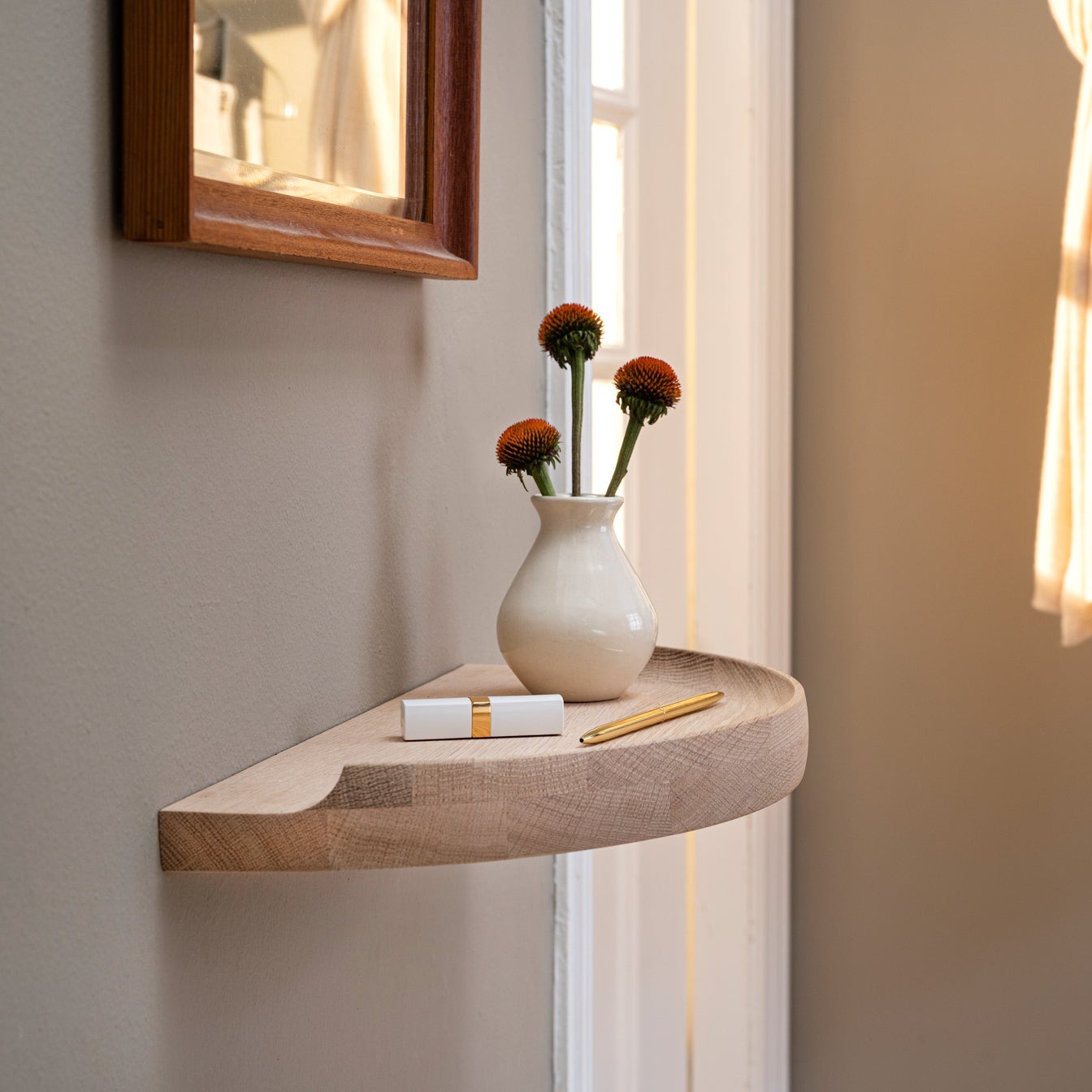 Arcus Console Shelf is not just practical - it's a work of art. Its chamfered edge and organic shapes create a unique and aesthetic expression that enriches your home.
