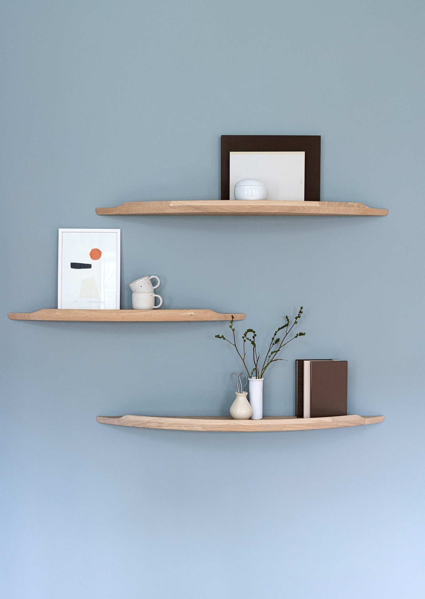 Arcus Shelf is available in variants such as white oiled oak, smoked oak, and natural oil.