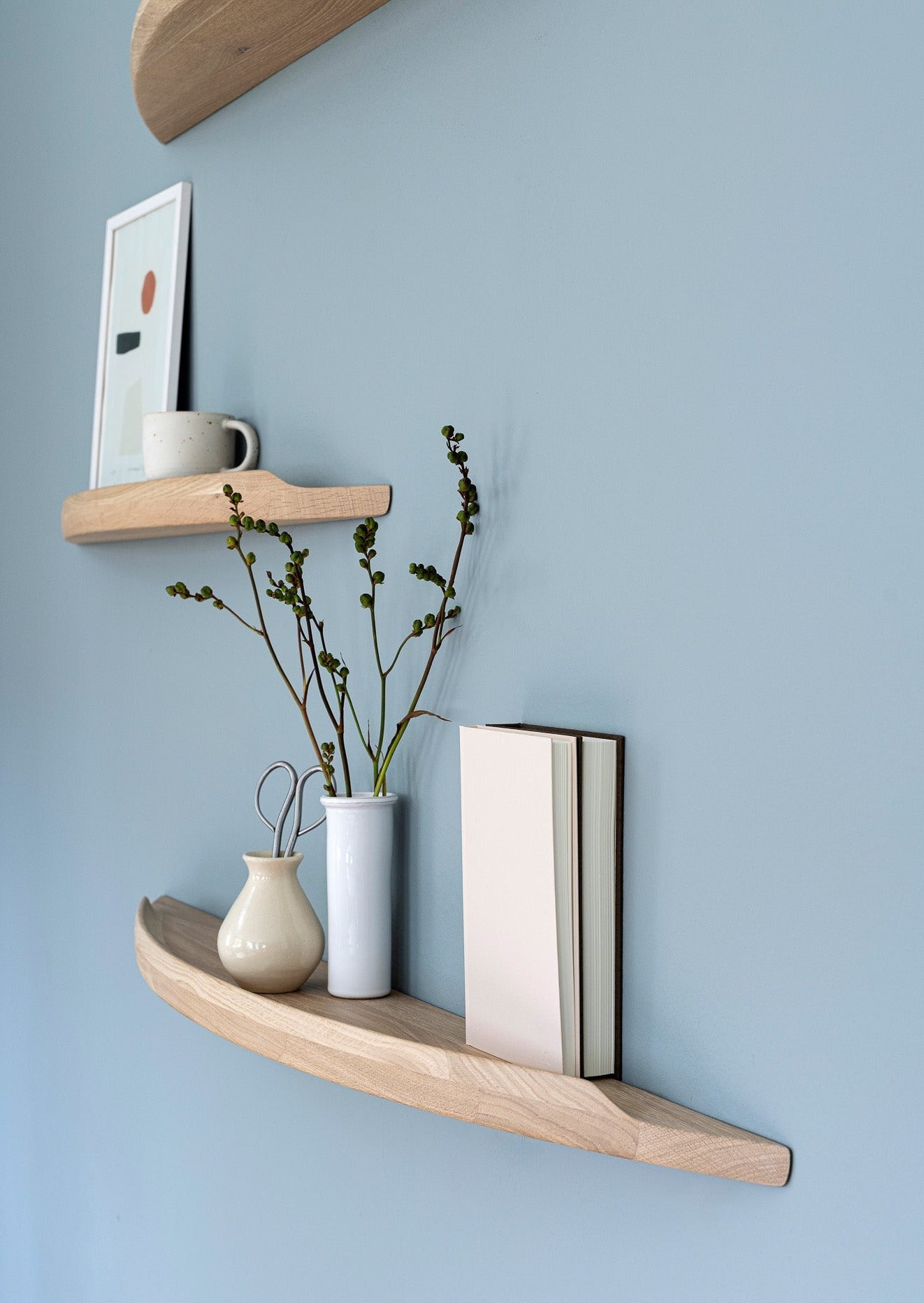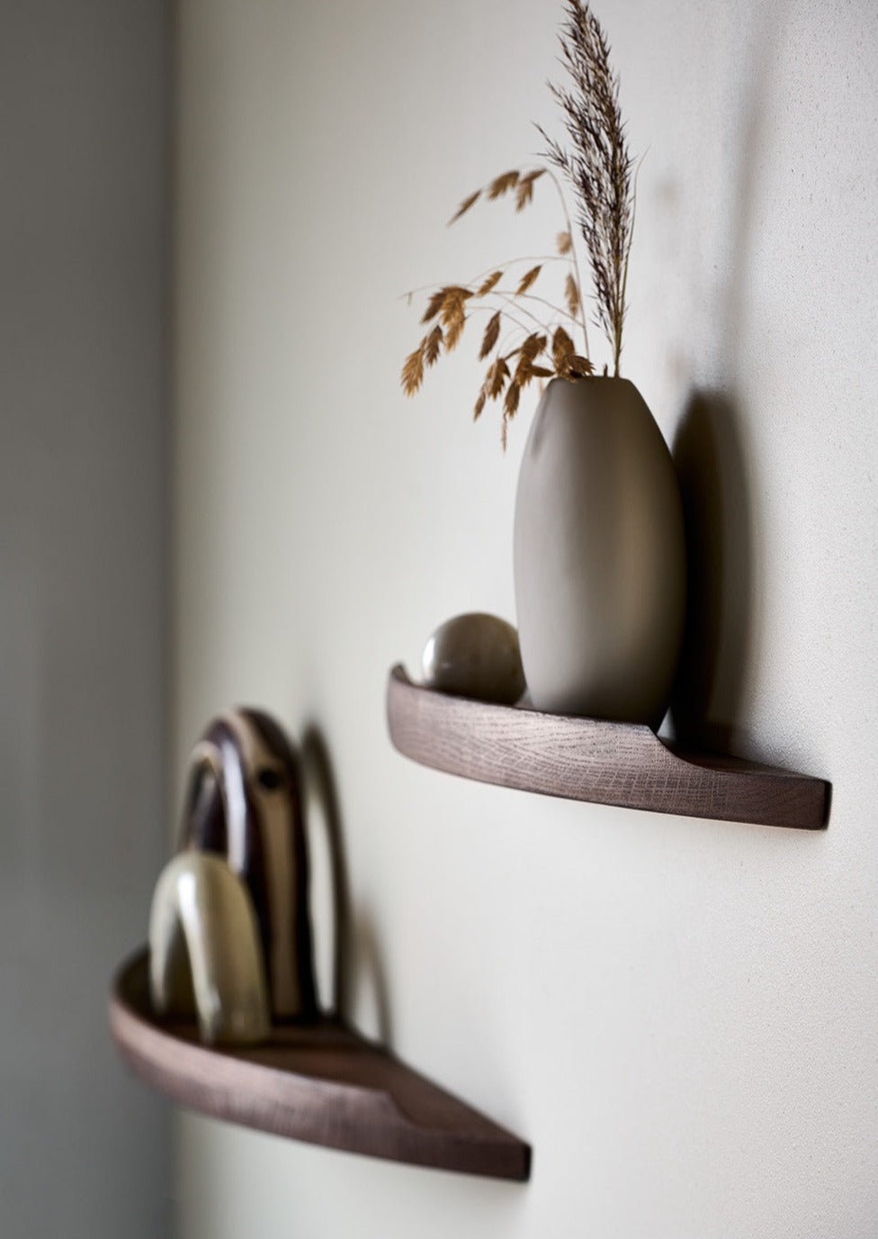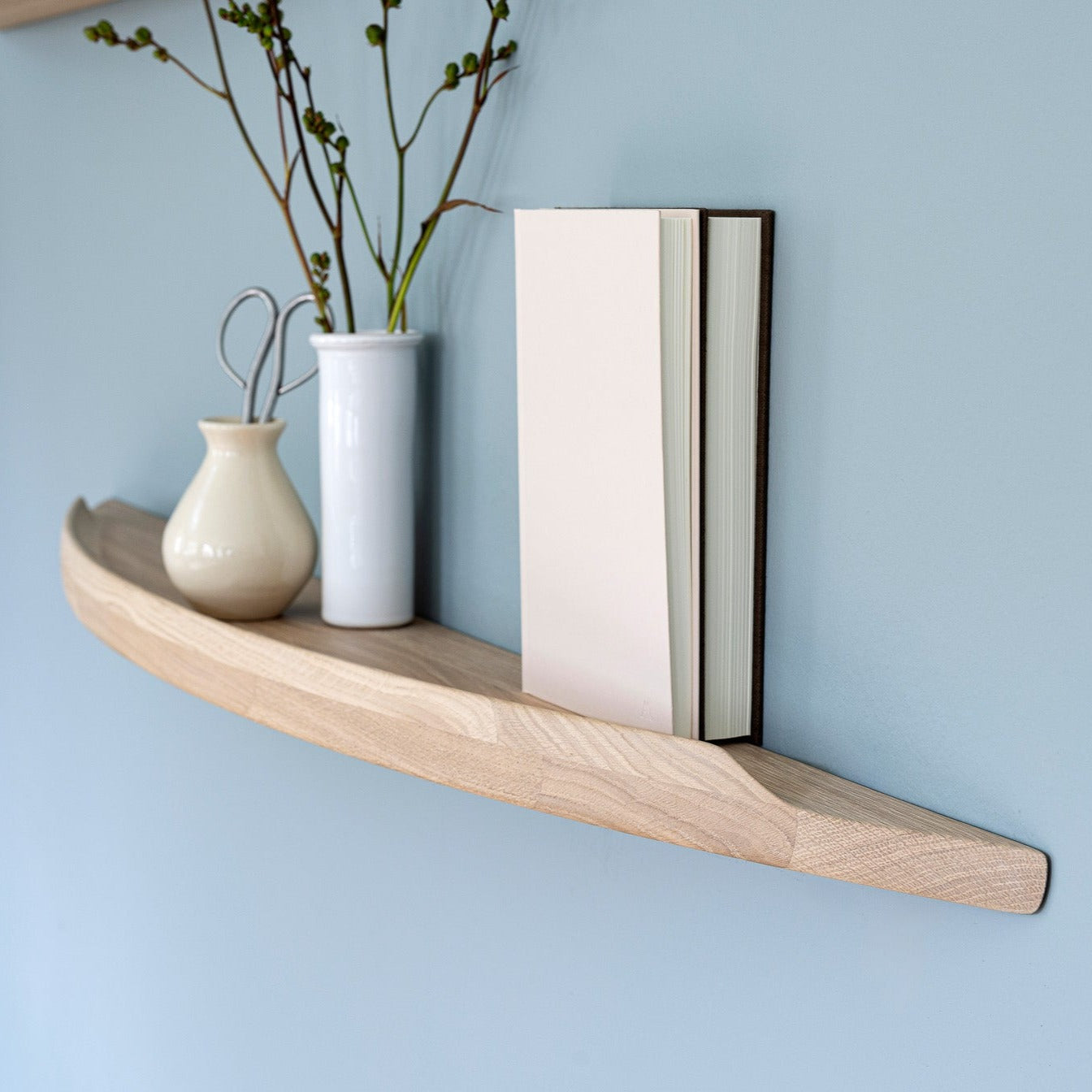 Experience Arcus Shelf, designed by Nanna Aakjær Svendsen. Inspired by Jørgen Aakjær's craftsmanship, this shelf combines function with artistic beauty.