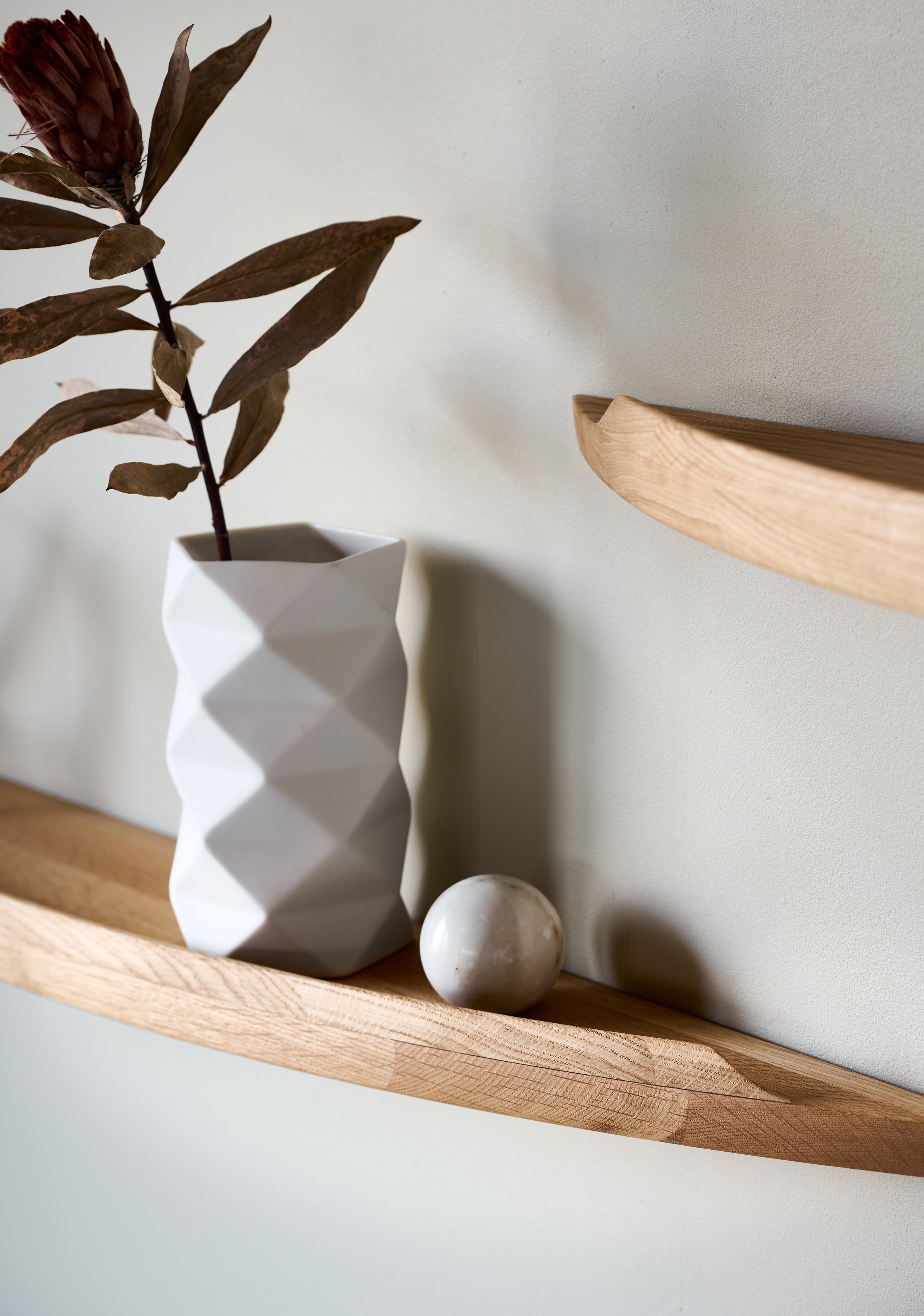 Arcus Shelf pays homage to Danish furniture tradition. With its chamfered edge and organic forms, it adds elegance and style to any space.