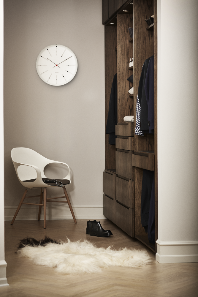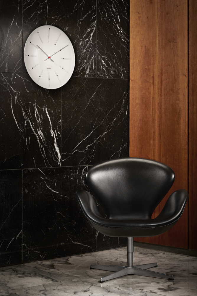 Description When Arne Jacobsen designed the Bankers Clock for the National Bank of Denmark in 1971, he also created a design icon for the home. This wall clock is available in four sizes, and its current design is faithful to the original drawings. With its diameter of 19", this clock is the largest in the range. The clock case supporting the concave glass front gives the clock an appearance of hovering on the wall. A great gift idea for weddings, anniversaries, birthdays, school leavers and other special occasions.