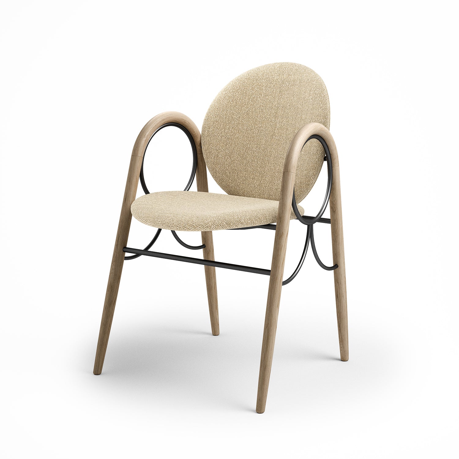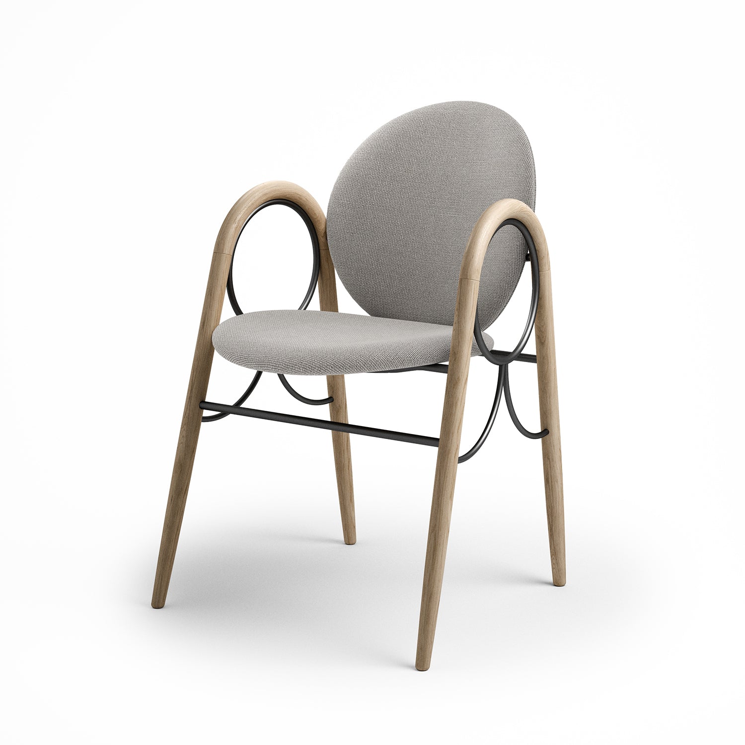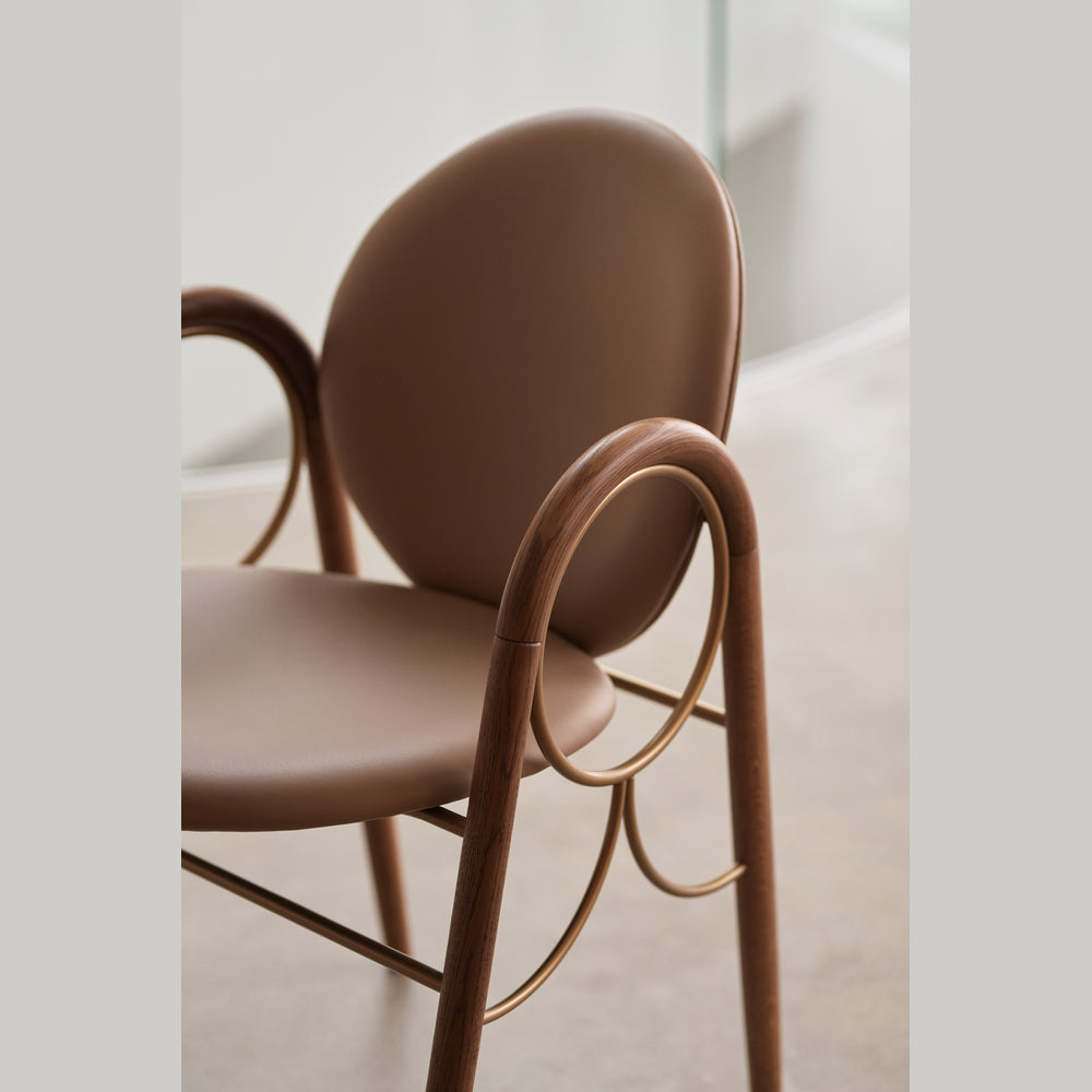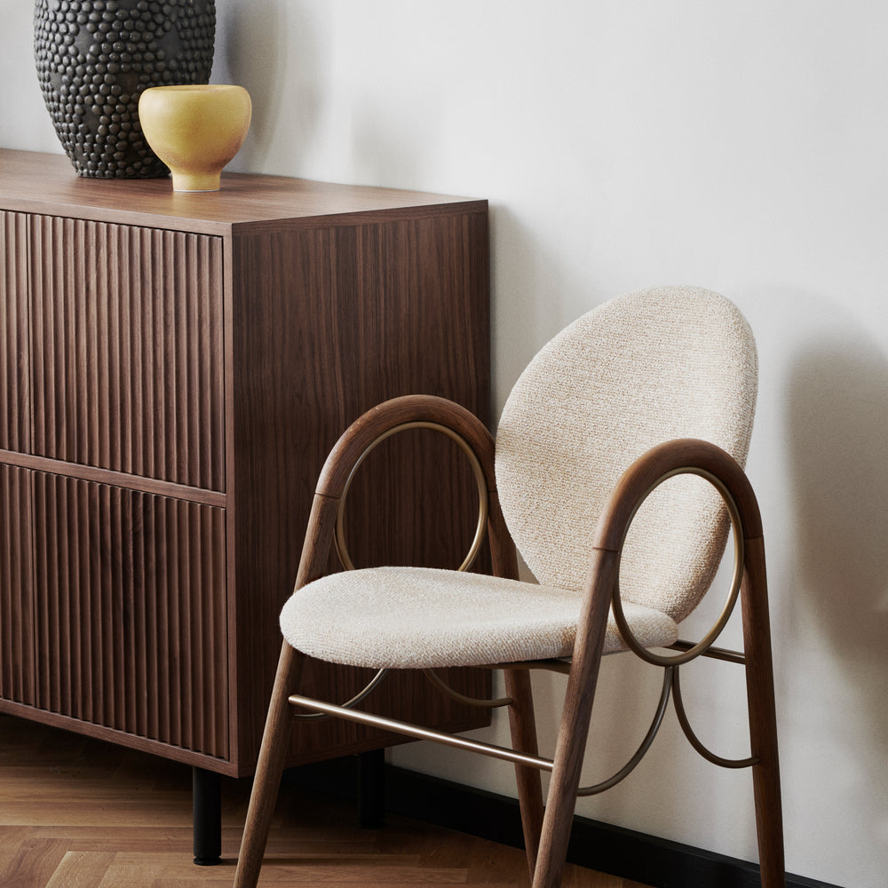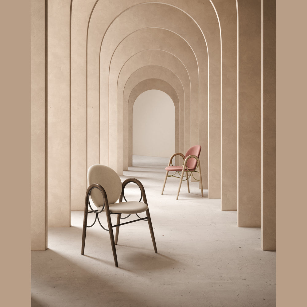 The Arkade Chair is a previously unreleased chair by Danish architect Nanna Ditzel, designed in 1983. The design exemplifies Ditzel’s hallmark of elegant geometries and fondness for soft circular shapes, expressed with recurring arches, hence the name Arkade (the Danish word for Arcade), and a nod to classic architecture.