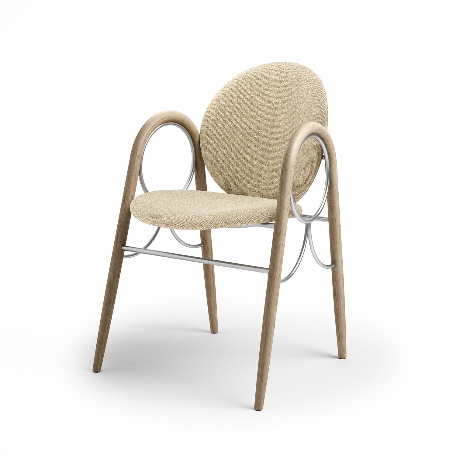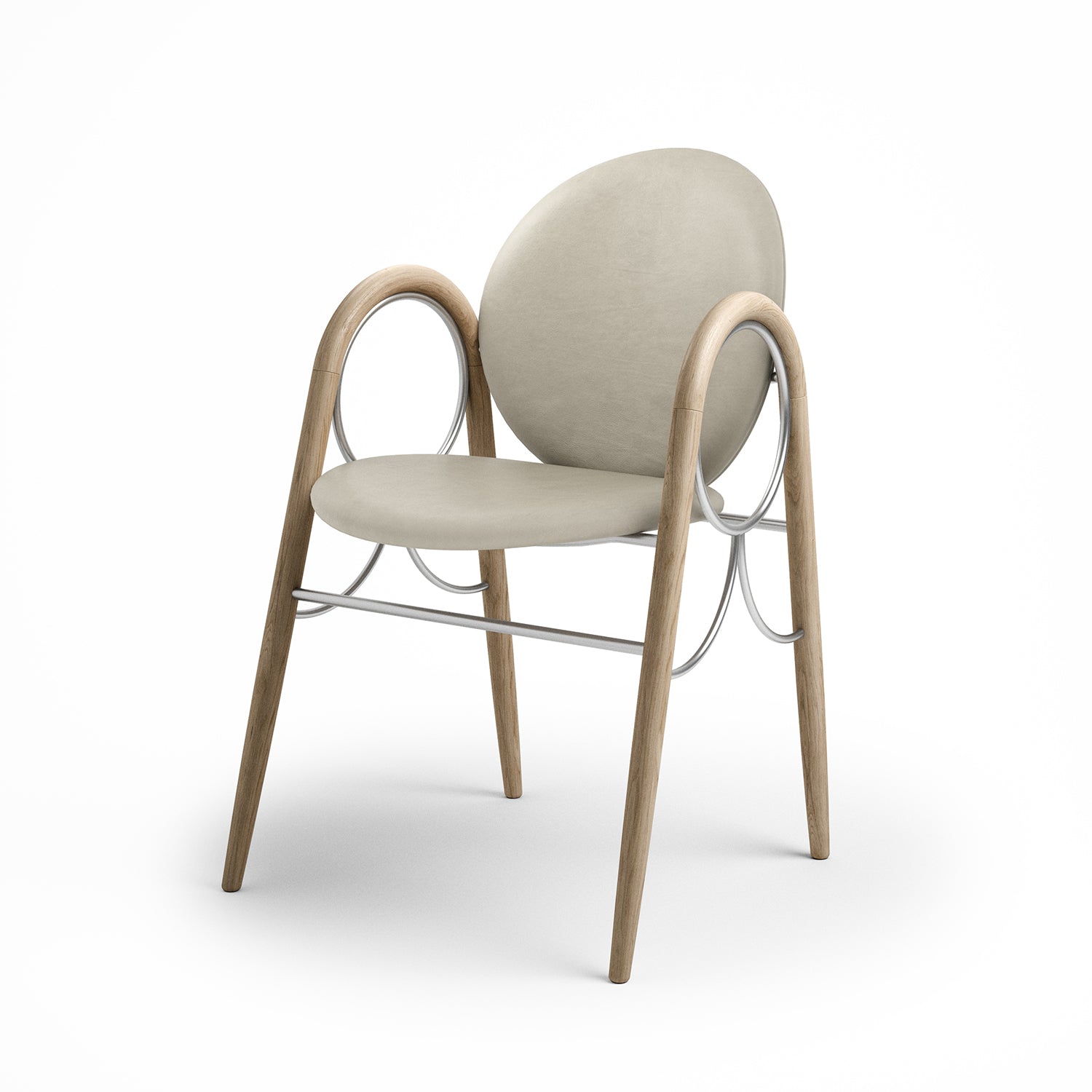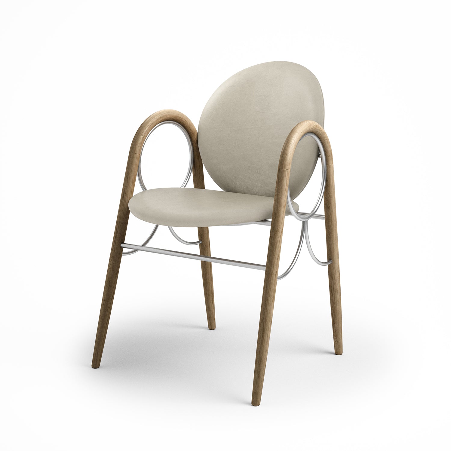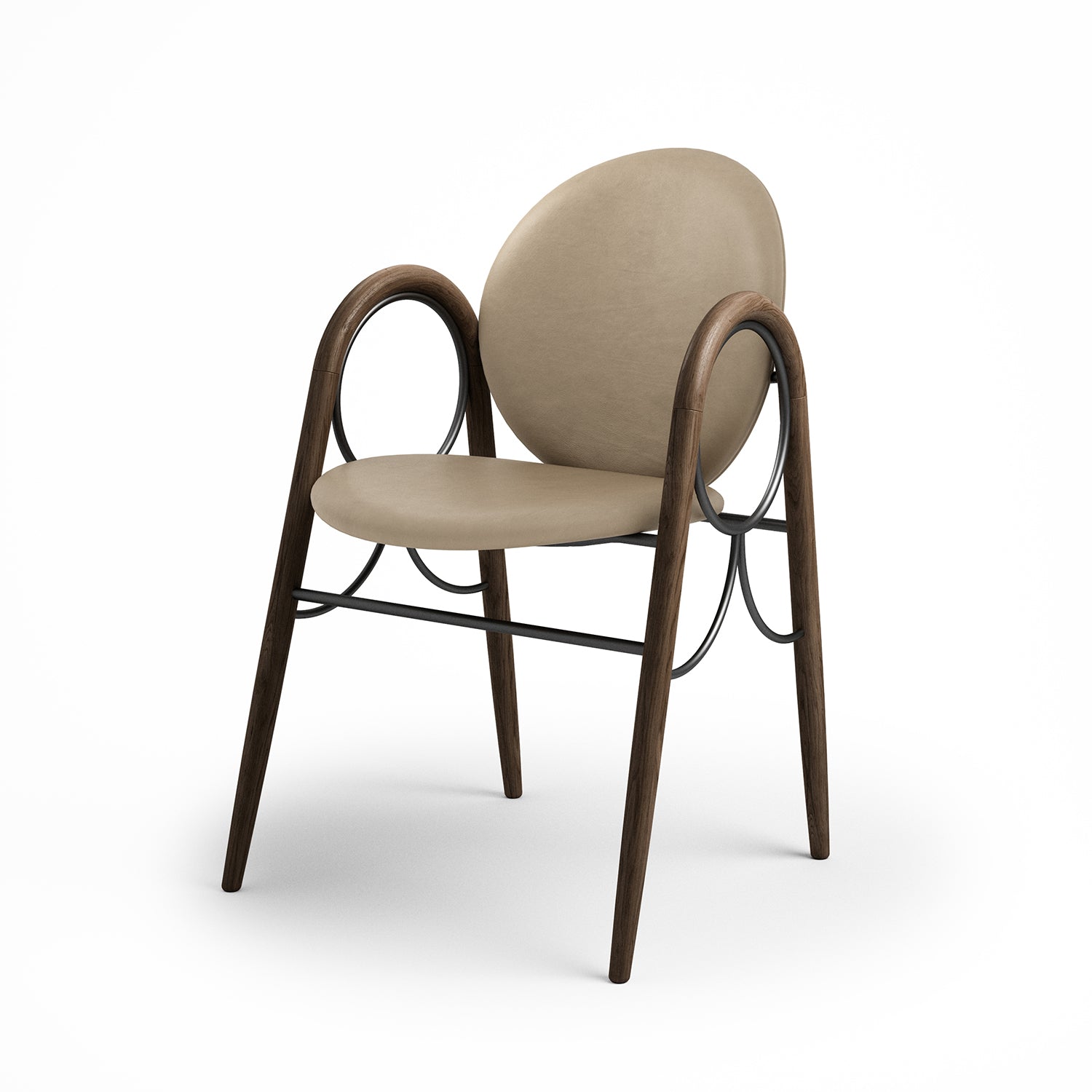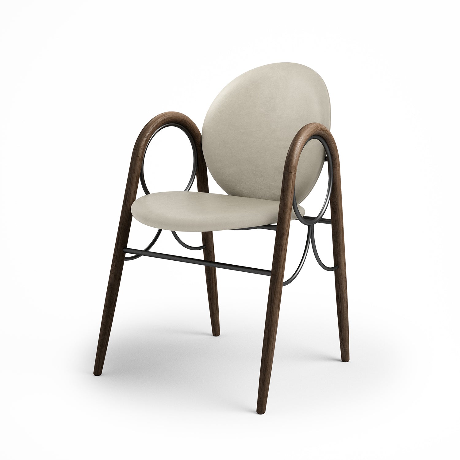 The Arkade Chair is a previously unreleased chair by Danish architect Nanna Ditzel, designed in 1983. The design exemplifies Ditzel’s hallmark of elegant geometries and fondness for soft circular shapes, expressed with recurring arches, hence the name Arkade (the Danish word for Arcade), and a nod to classic architecture.