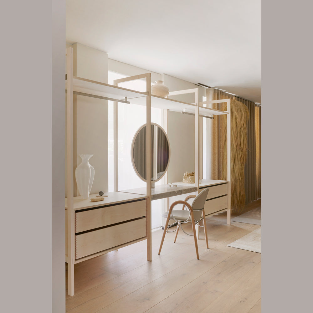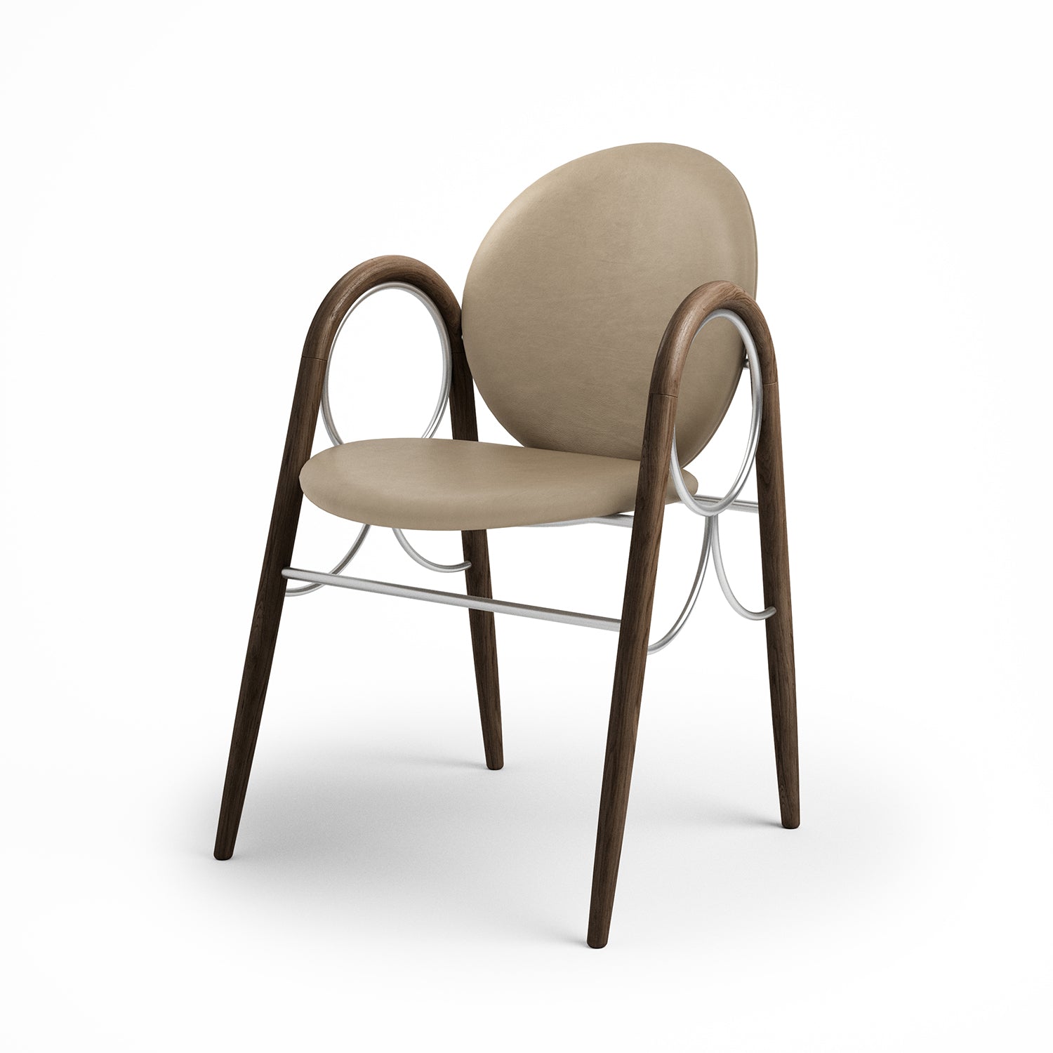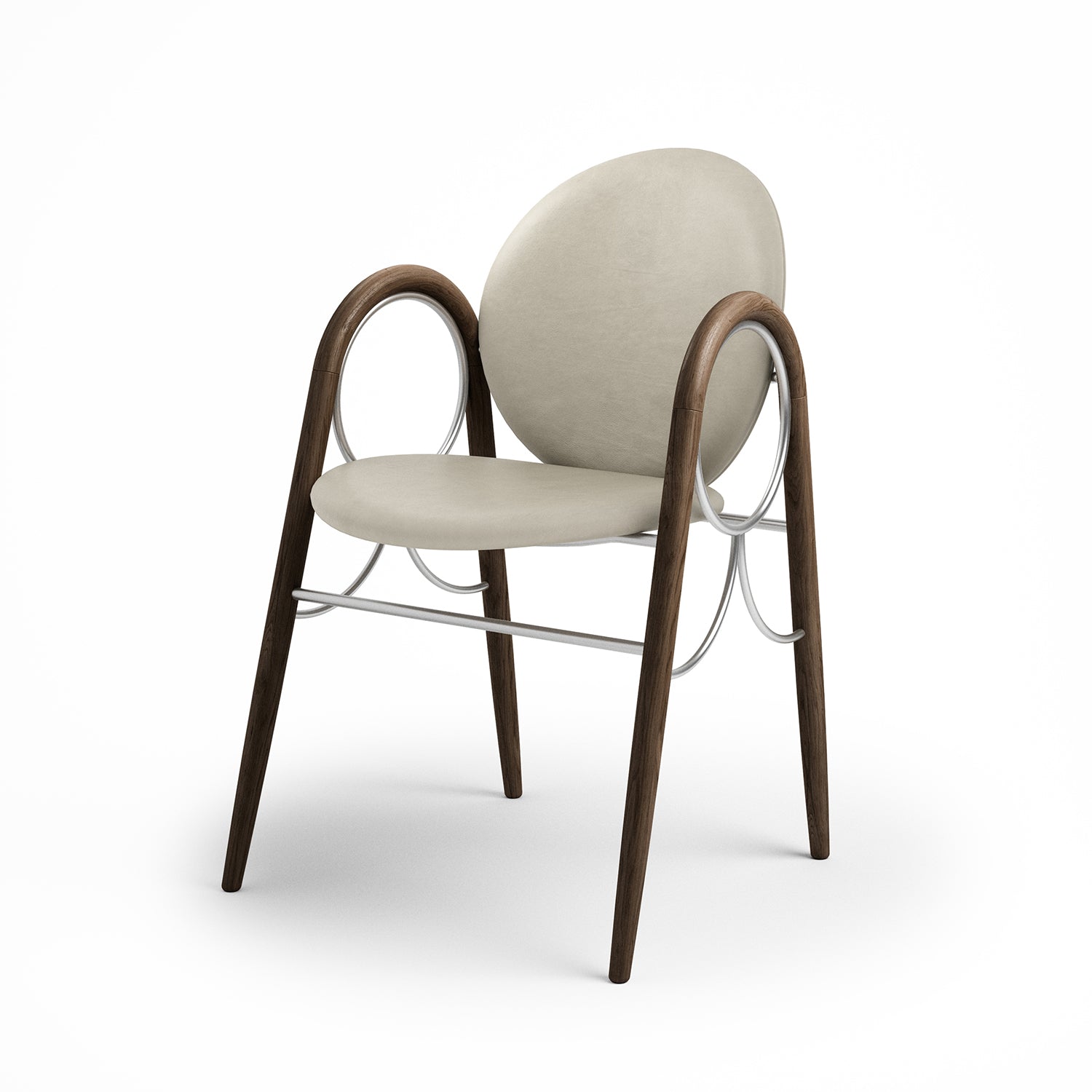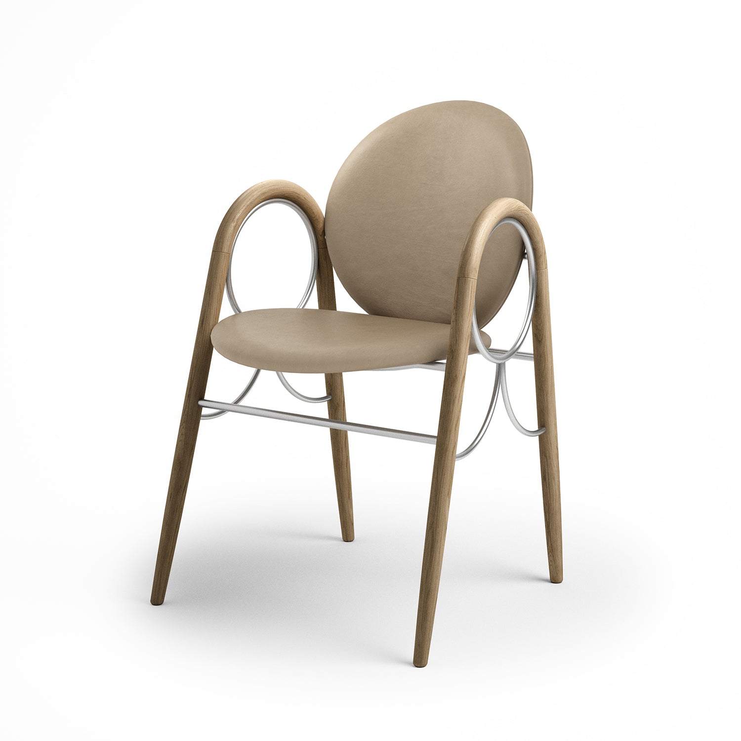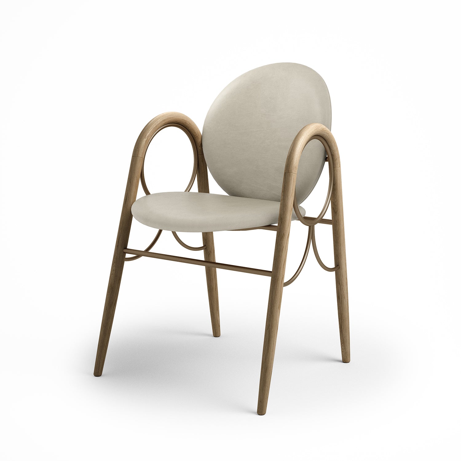 The Arkade Chair is a previously unreleased chair by Danish architect Nanna Ditzel, designed in 1983. The design exemplifies Ditzel’s hallmark of elegant geometries and fondness for soft circular shapes, expressed with recurring arches, hence the name Arkade (the Danish word for Arcade), and a nod to classic architecture.