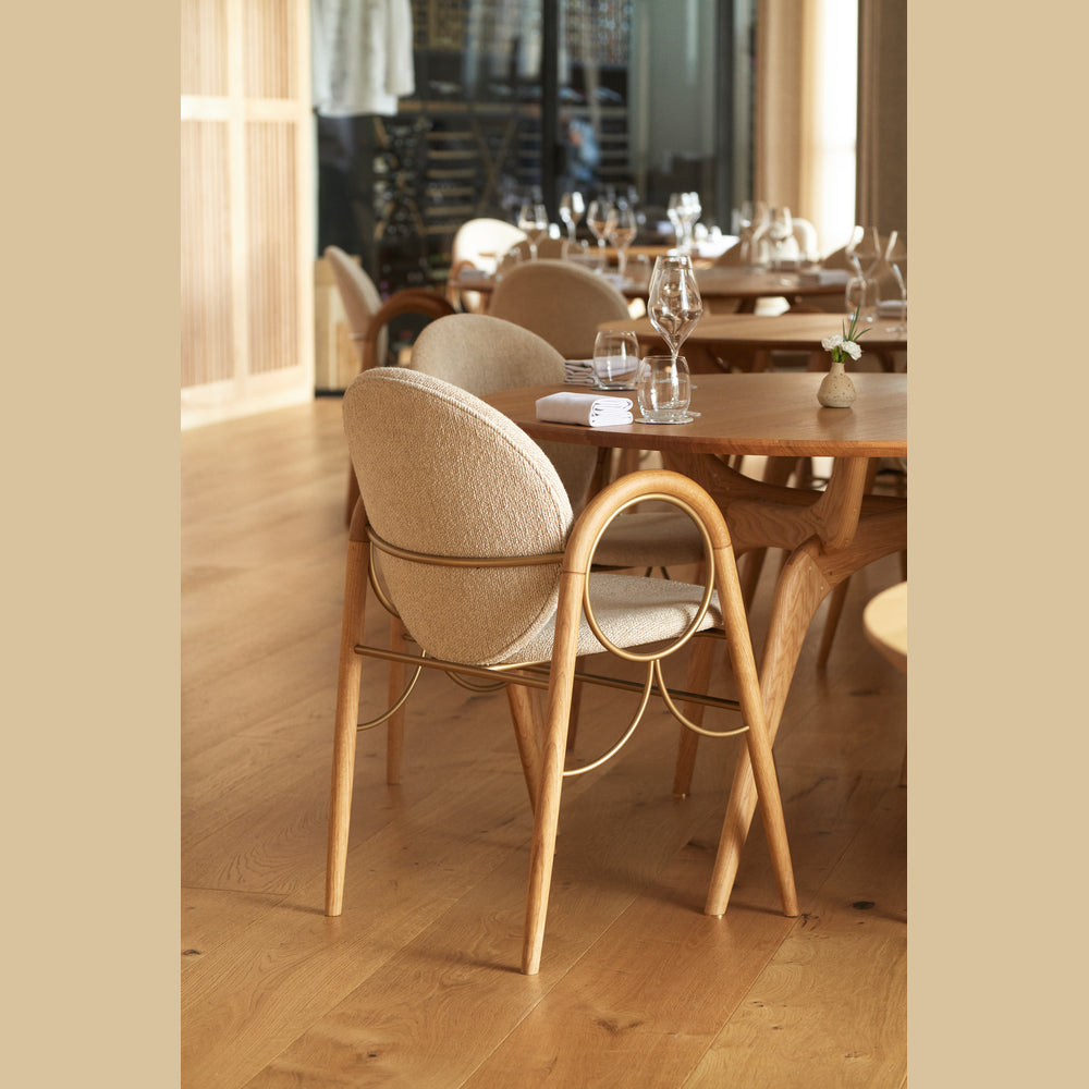 The Arkade Chair balances expressive character with a refined, architectural presence. Its distinctive arched backrest and softened geometric lines reflect a modern take on Danish design heritage, offering both sculptural appeal and functional comfort.
