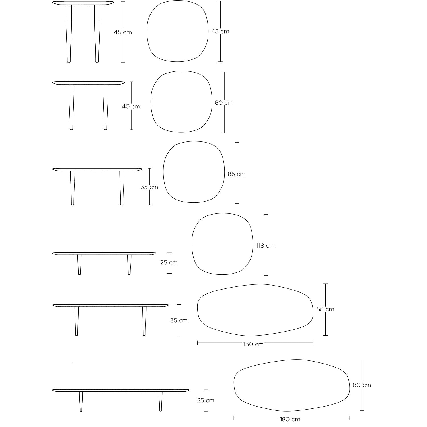 The Jari Low Table blends sculptural elegance with functional adaptability. The tables reflect the organic forms of stones smoothed by waves over time, which fluid design and soft, rounded edges introduce a sense of calm and timelessness to any interior. The narrowing profiles of the legs create a floating appearance, enhancing their organic shape. Whether used individually or grouped, the Jari Low Tables offer versatility for various settings, from private residences to hospitality spaces.