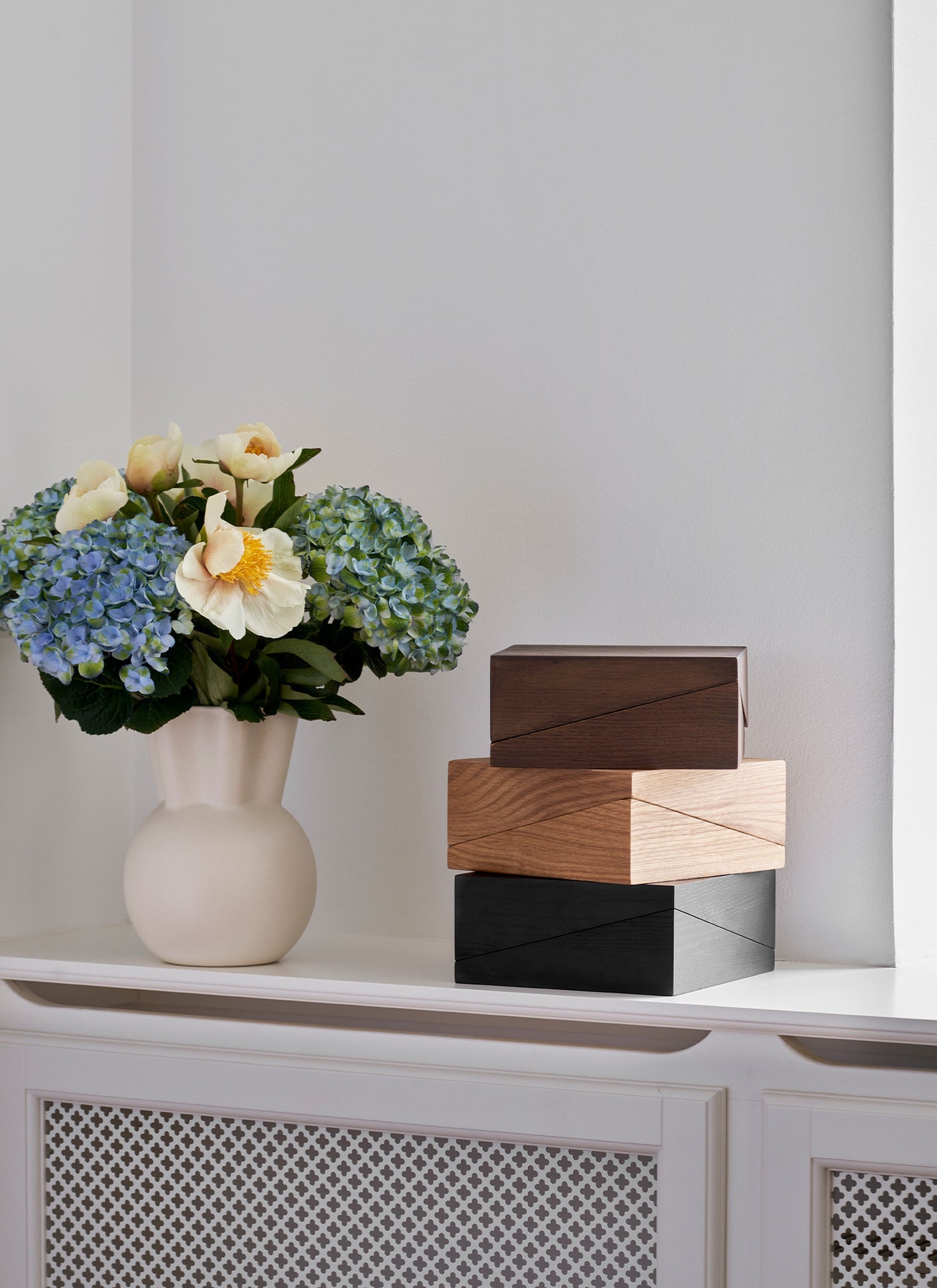 Diplo is a unique piece of design. It’s a totally new take on the box, enlivened by its zig-zag line division and challenging the locked shape that a box usually features. The crooked line that divides Diplo immediately makes this classic utility item dynamic. The difference lies in the crookedness. The brainchild of the Greek-born architect and designer Baki Katsinis, Diplo comes in several versions and is a refreshing take on modern Nordic design.