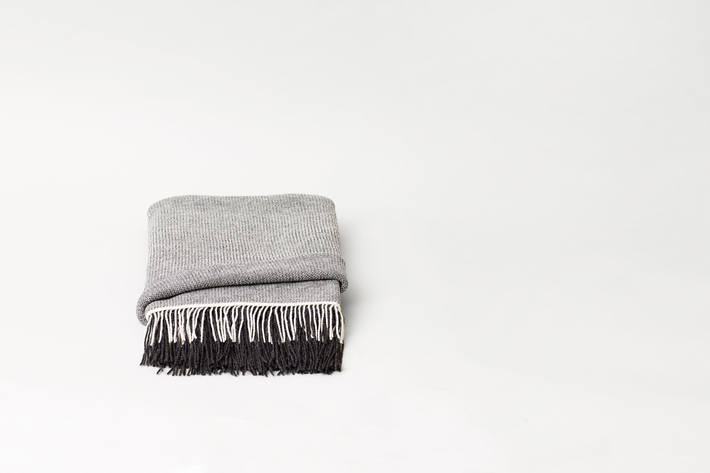 Details Series: Form & Refine Aymara Designer: Herman Studio Material: 100% Super Fine Alpaca Color: Cream, Dark Grey Dimensions: 51" x 75" Weight: 29 oz Place of Origin: Made in Bolivia