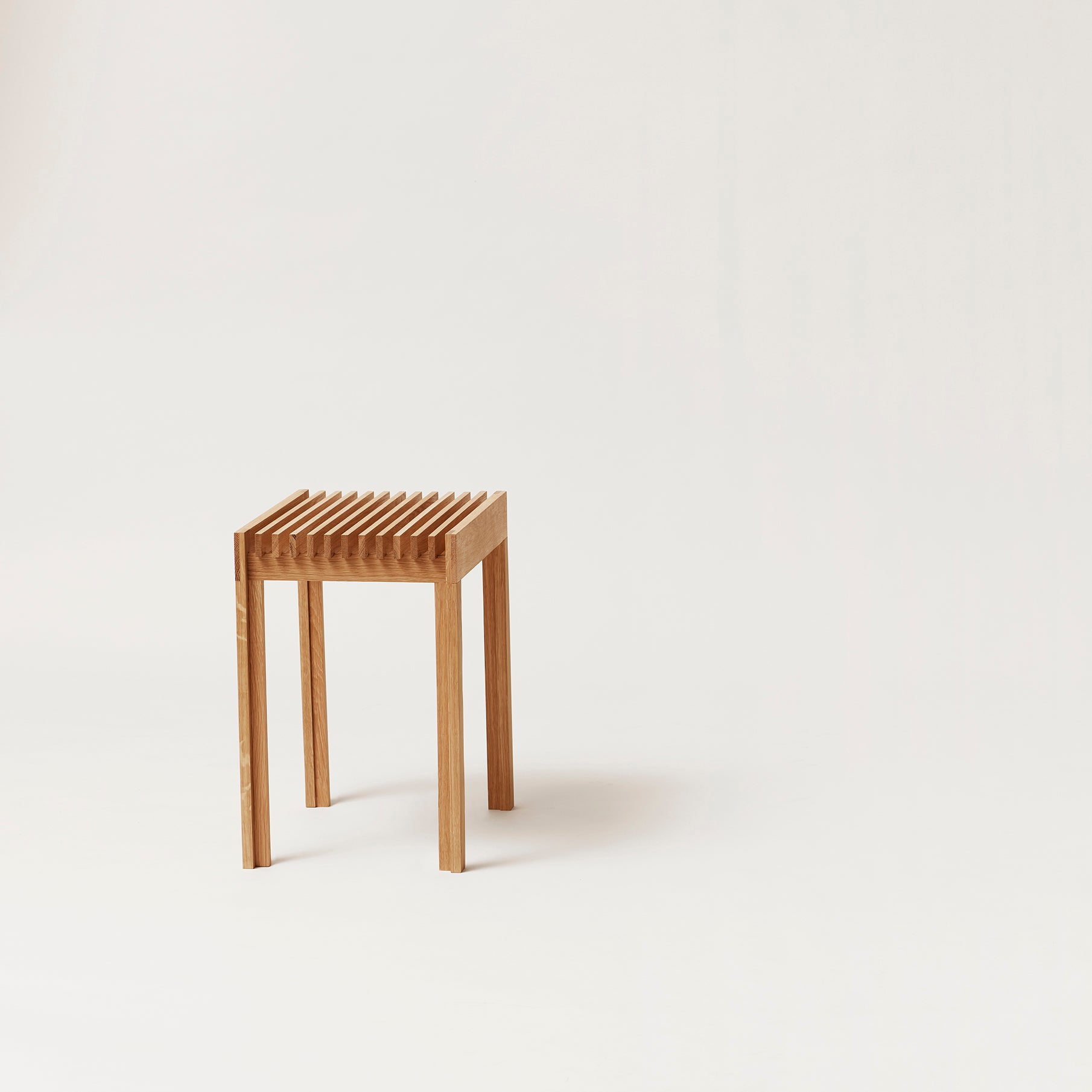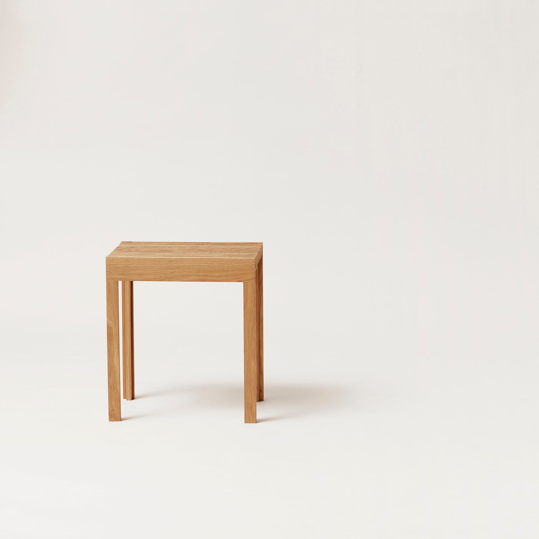 A very versatile and ultra-light weight stool to be used for extra seating, an elegant design object or side table. Even though it is very light in weight there is no compromise in quality, the stool is remarkably sturdy and strong. This piece boasts highly detailed woodwork and minimalistic wooden slat repetition.