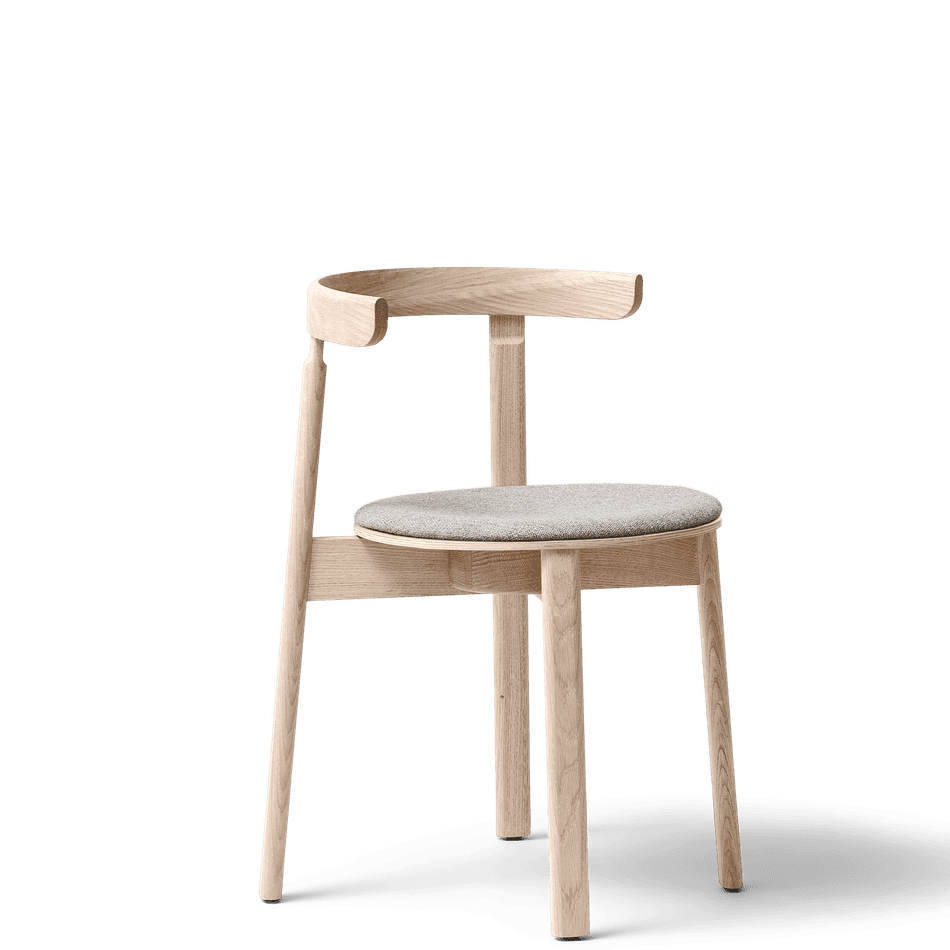 The wood seat rests on a strong X-shaped structure that provides optimal stability and supports the light expression. The padded seat upholstered in Kvadrat Hallingdal 65 adds a luxurious touch and excellent comfort.