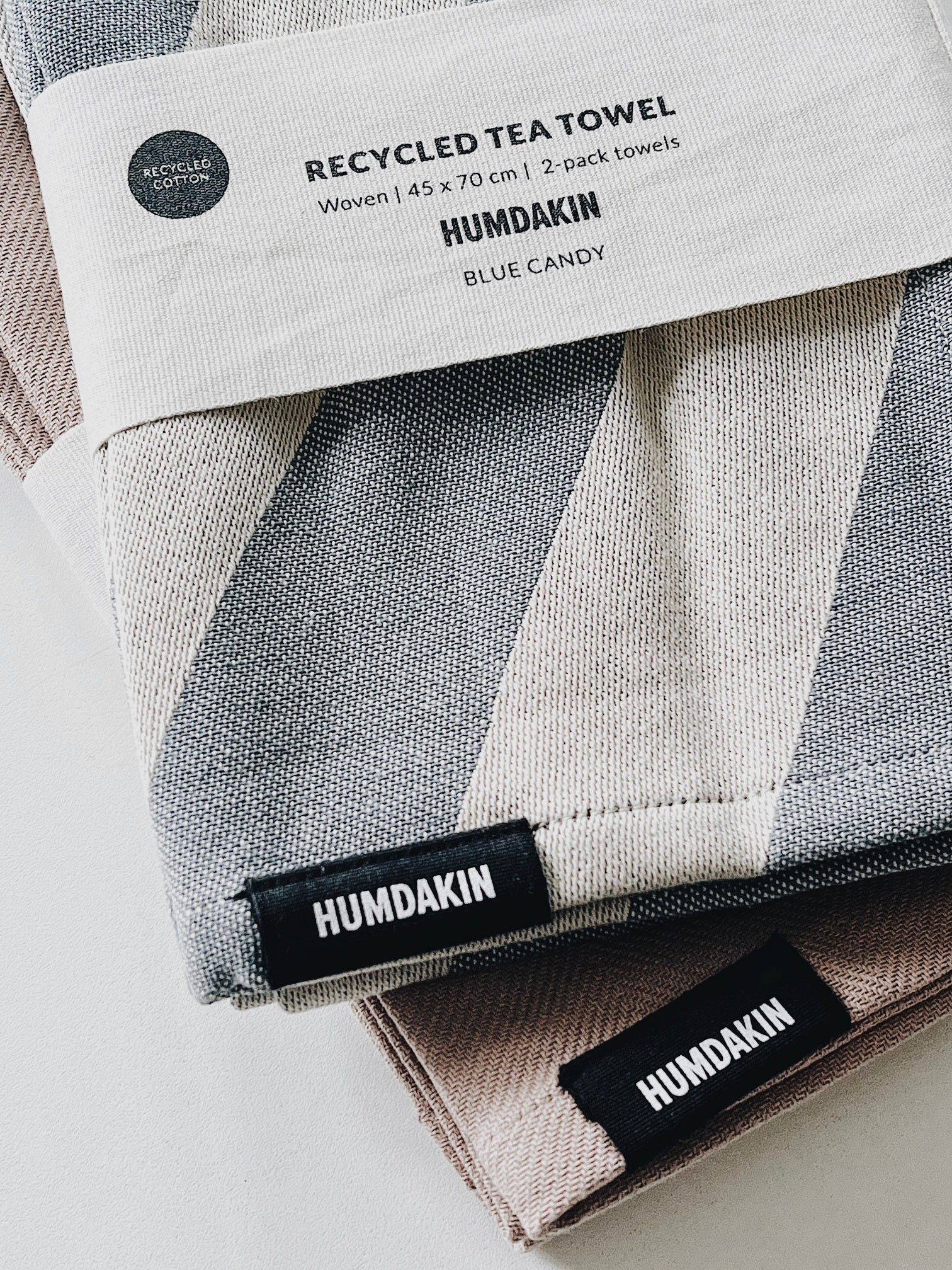 The Humdakin 2-pack of tea towels are made of 100% Recycled Cotton. The tightly woven fabric ensures excellent drying properties and long durability.
