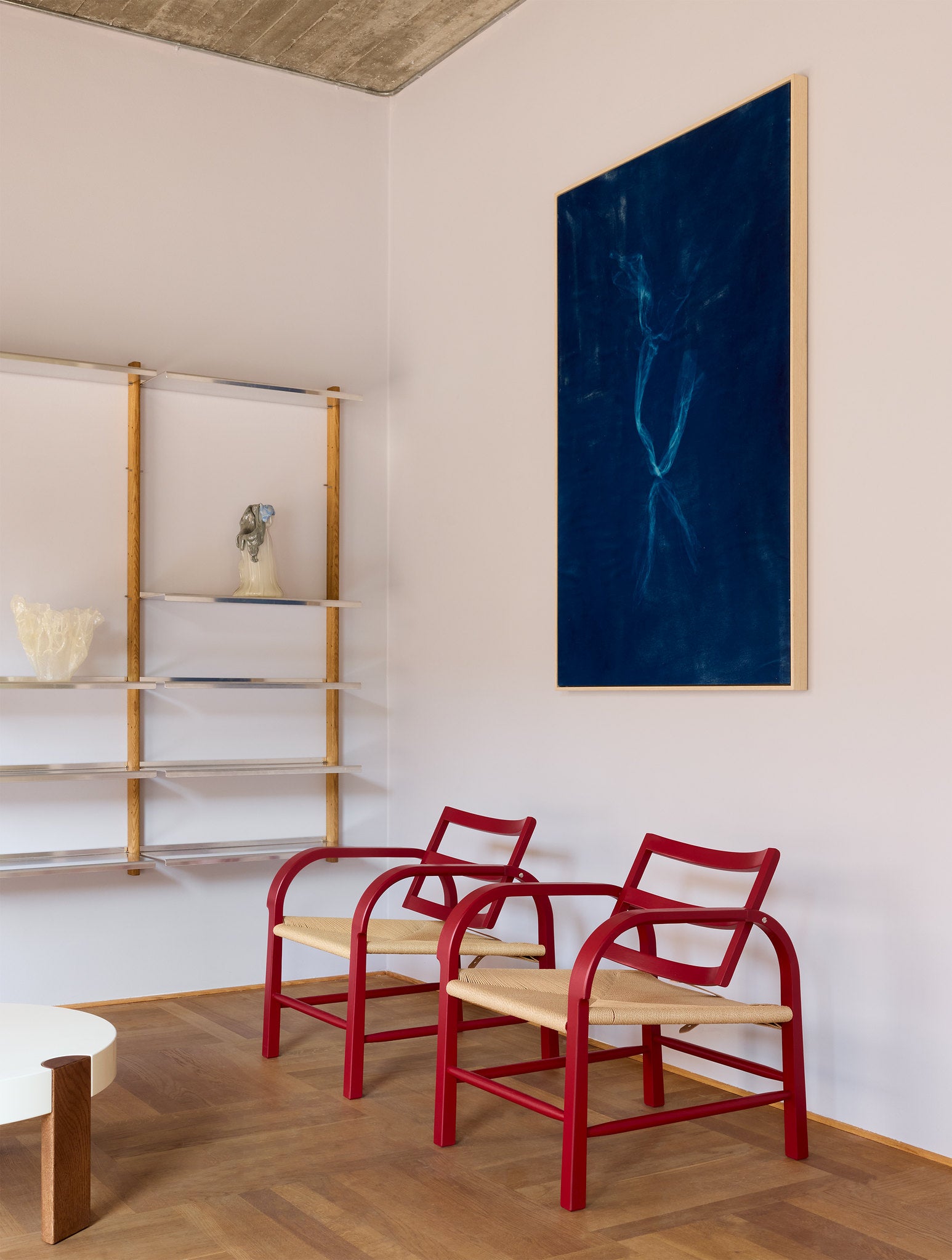 Meticulously crafted, the chair offers a unique experience with its twistable backrest, allowing personalized seating angles via a small leather strap. The traditional paper cord weaves on the seat intertwine with a solid oak frame, creating a delicate dance between texture and form.