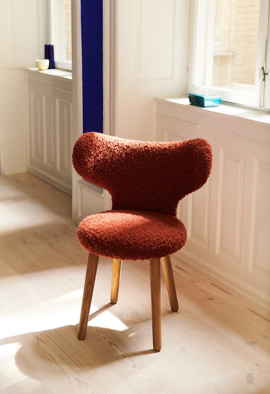Details: Design: Magnus Læssøe Stephensen Year: 1935 Material: Materials: Upholstery & Oakwood or Walnut Standard textiles: DAW: Royal, Mohair, Mcnutt, ROMO: Linara, BUTE: Storr, KVADRAT: Remix, Hallingdal and Fiord, DEDAR: Artemidor, Linaer, JENNIFER SHORTO: Kongaline, Seafoam, SKANDILOC sheepskin: Moonlight, Sahara, Honey, COM/COL Dimensions: H: 29.5" x W: 18.1" x D: 19.7" | Seat Height: 18.1"