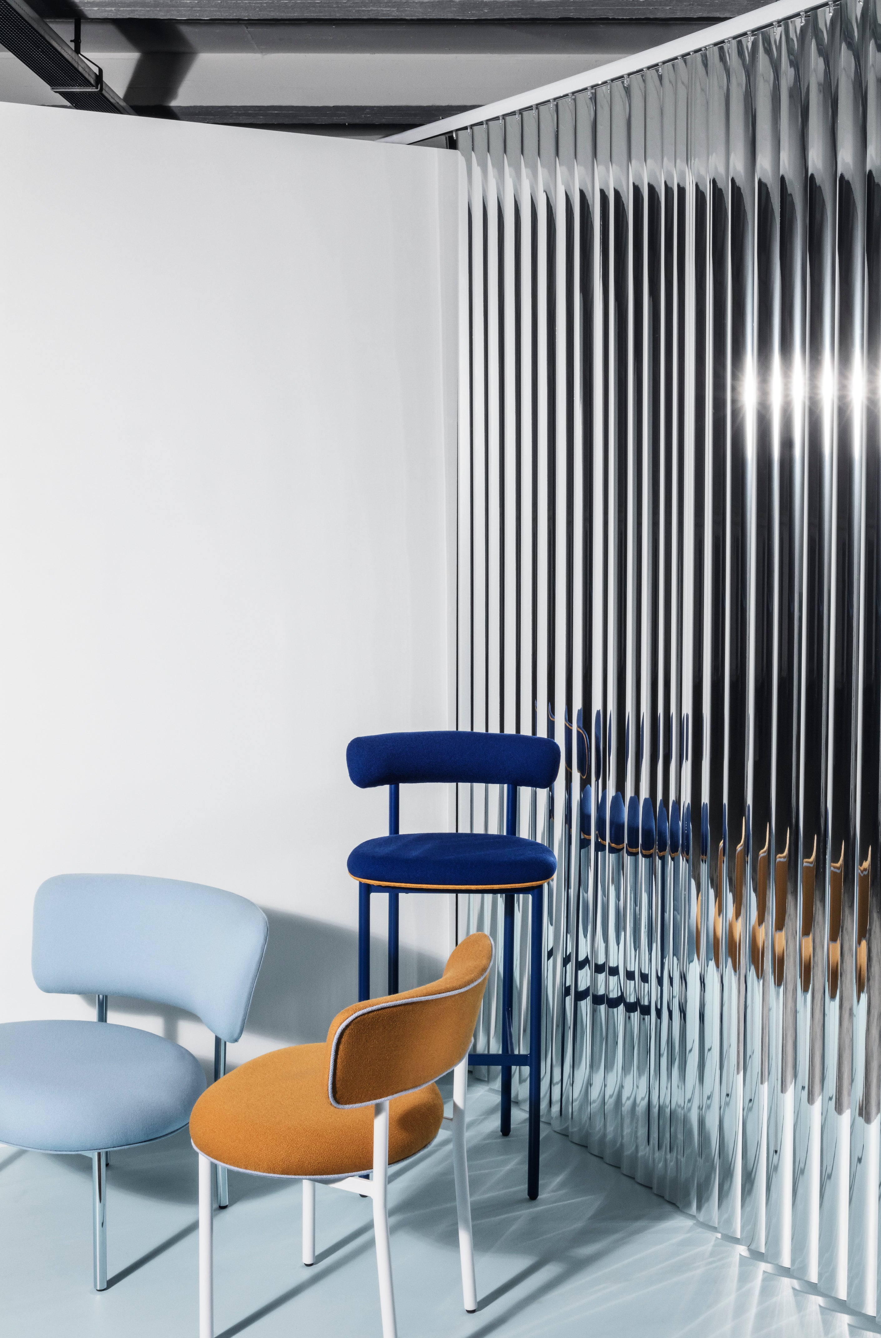 Details Designer: David Thulstrup Material: Steel & Stainless Steel, Upholstery Options Finish: Black & Polished Dimensions: W: 20.8" x D: 20.4" x H: 29.5", Seat Height: 17.7” Place of Origin: Poland