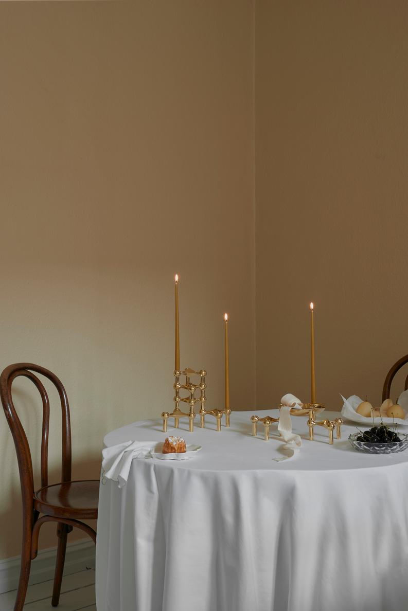 The exclusive, hand-dyed STOFF taper candles by Danish Ester & Erik have a long and tapered shape with a cone-shaped bottom to make them fit perfectly in the STOFF Nagel candle holders. The candles do not drip, are self-extinguishing and burn out slowly and elegantly so that no residues are left in your candle holders.