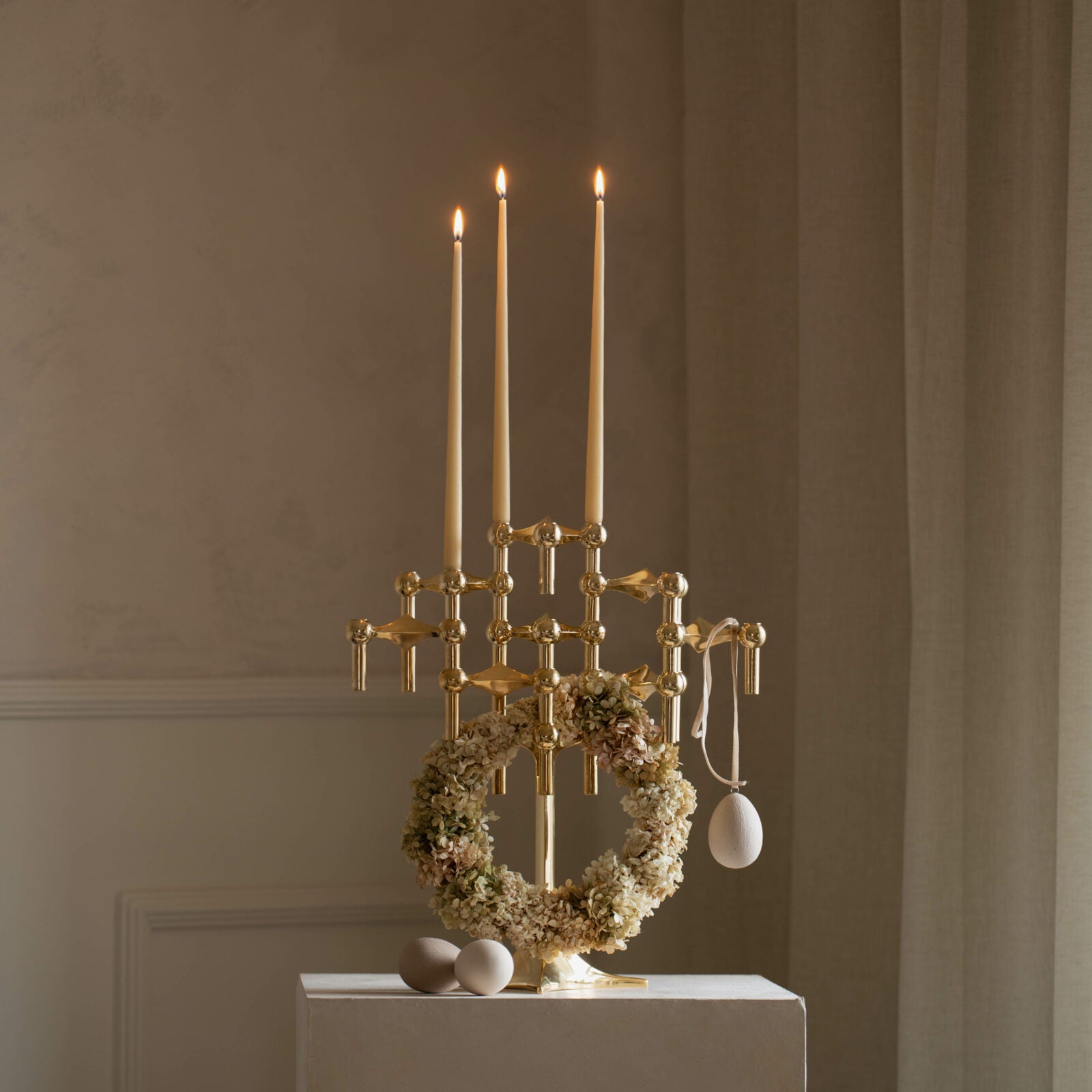 The exclusive, hand-dyed STOFF taper candles by Danish Ester & Erik have a long and tapered shape with a cone-shaped bottom to make them fit perfectly in the STOFF Nagel candle holders. The candles do not drip, are self-extinguishing and burn out slowly and elegantly so that no residues are left in your candle holders.