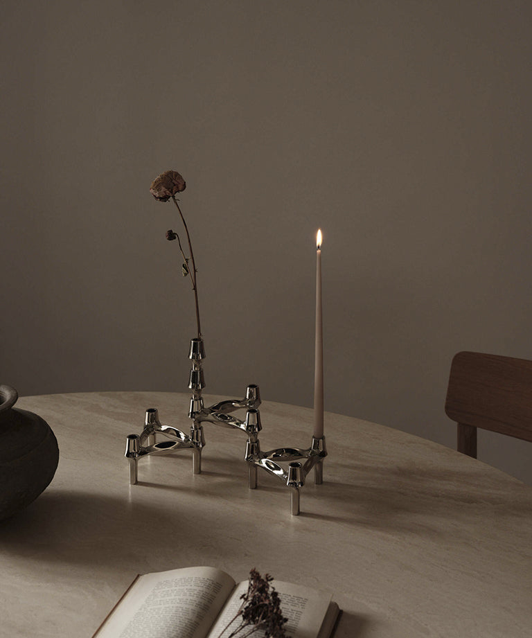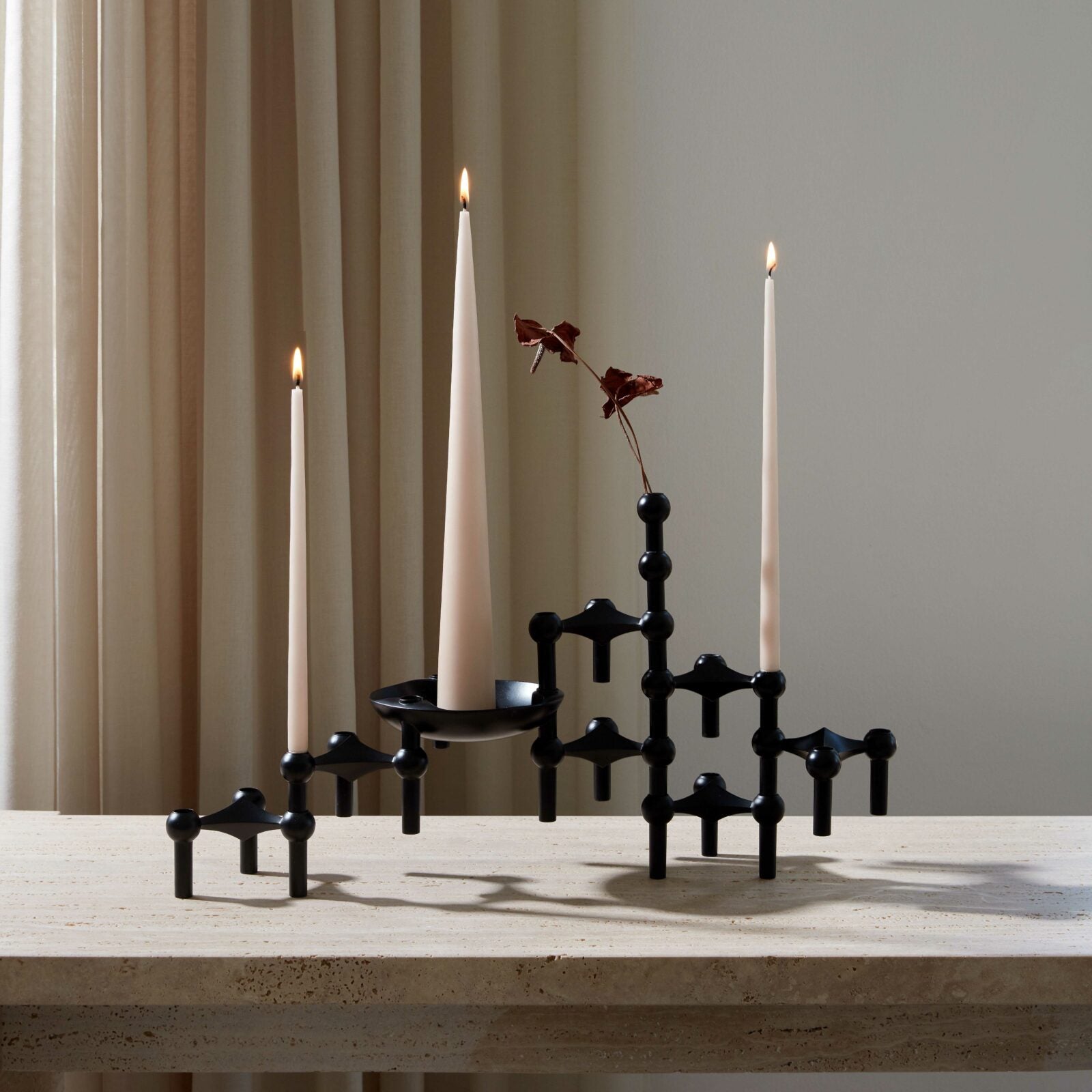 The exclusive, hand-dyed STOFF taper candles by Danish Ester & Erik have a long and tapered shape with a cone-shaped bottom to make them fit perfectly in the STOFF Nagel candle holders. The candles do not drip, are self-extinguishing and burn out slowly and elegantly so that no residues are left in your candle holders.