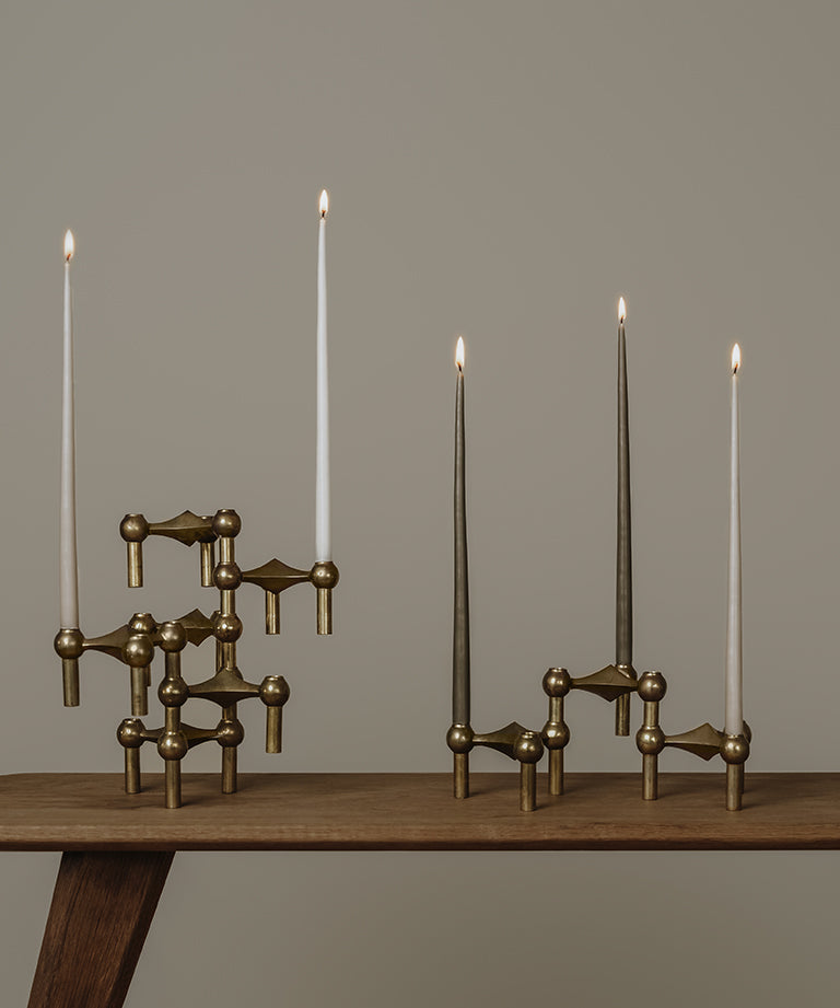 The exclusive, hand-dyed STOFF taper candles by Danish Ester & Erik have a long and tapered shape with a cone-shaped bottom to make them fit perfectly in the STOFF Nagel candle holders. The candles do not drip, are self-extinguishing and burn out slowly and elegantly so that no residues are left in your candle holders.