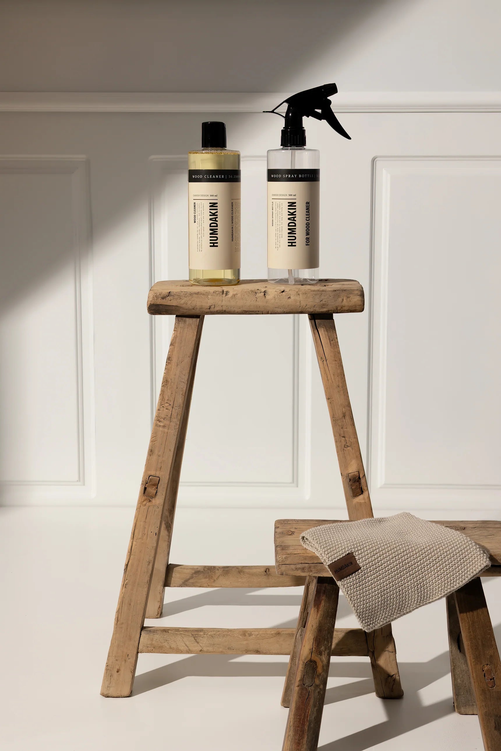 DIRECTIONS FOR USE: Add a small teaspoon of the Humdakin Wood Cleaner to 500 ml of lukewarm water, shake the bottle and you are ready to spray and clean. Spray the mixture directly on a clean, damp cloth when cleaning to achieve the best results. Can be used on all surfaces that tolerate water.